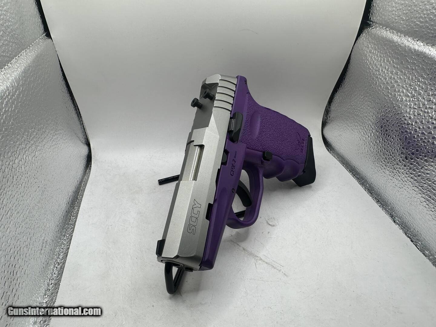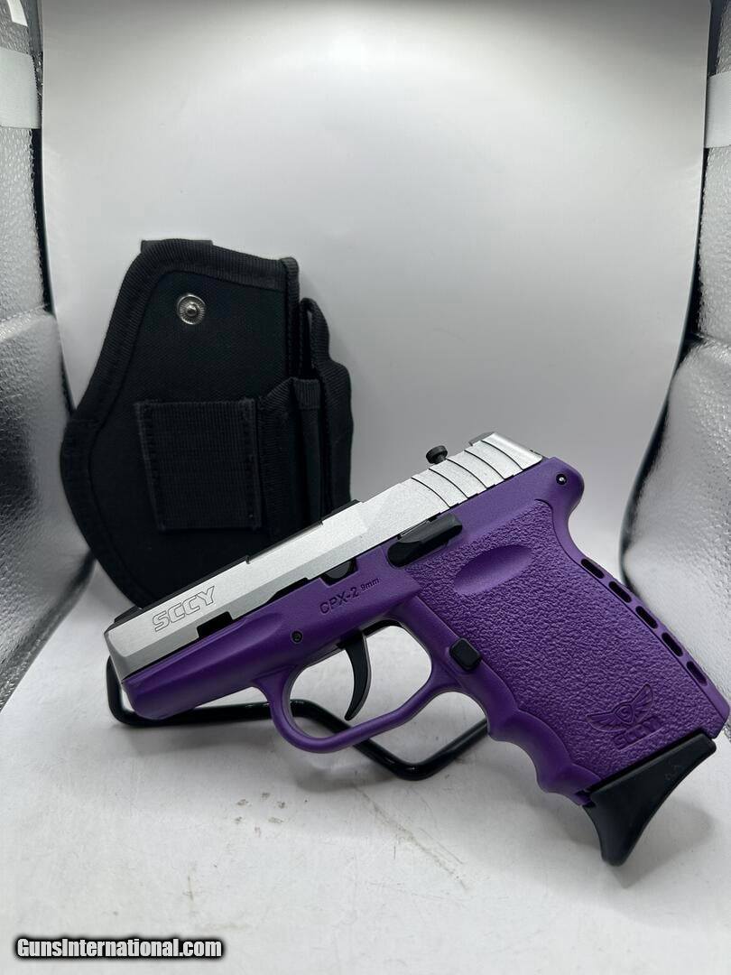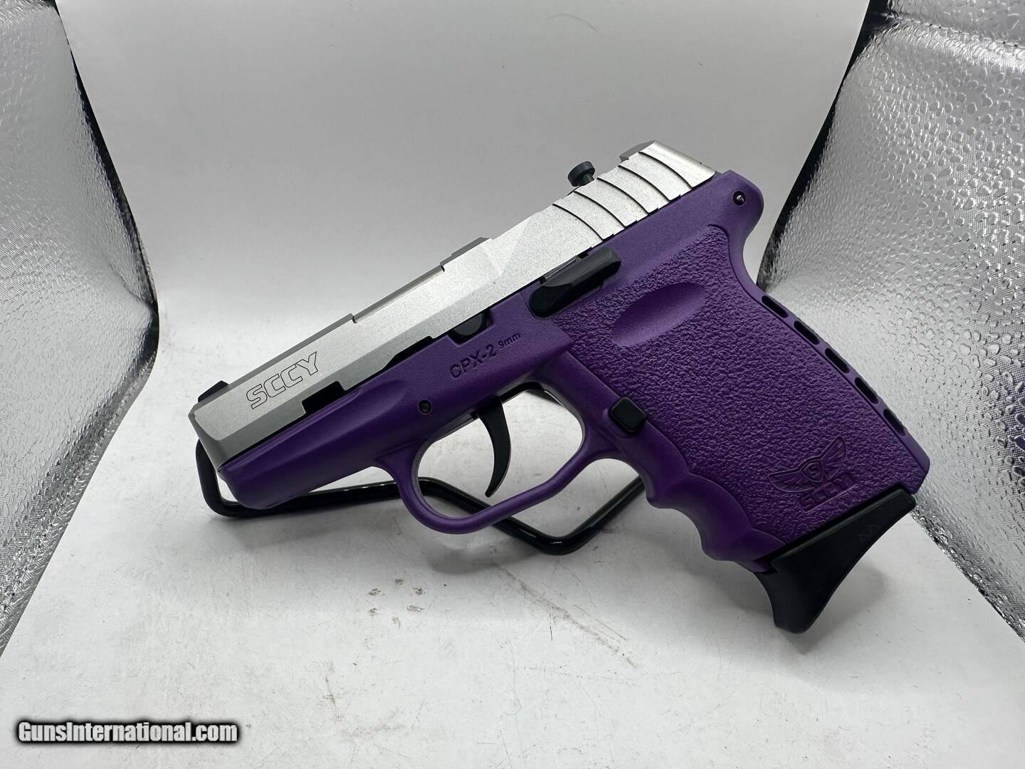 Description: Guns Listing ID: 1343432 The SCCY CPX-2 is designed for shooters who prefer a concealed carry pistol without an external safety. The CPX-1 and CPX-2 models are identical in all other aspects of specifications and performance. Firearm Features Barrel: machined from bar stock with 7 lands and grooves having a 16-1 right hand twist. Receiver: 7075-T6 aircraft grade heat treated aluminum alloy, machined from bar stock. Grip/Frame: Made from Zytel polymer, with ergonomic finger grooves and an integral “RE-COIL CUSHION” on the back-strap. Recoil Spring System: all steel, fully encapsulated for ease of disassembly and reassembly. Slide Lock/Release: steel with a Zytel over molded polymer extension for ease of operation.|4 4|dot sight system Hammer firing system: double action only, internal hammer with inertial firing pin to prevent accidental discharge if dropped. Double action trigger: specifically designed for shooter comfort and accuracy by designing the system to have a smooth effortless, consistent 9 pound trigger pull. Magazine: included with double stack, 10 round capacity magazine included. Firearm Specifications Barrel Length: 3.1 in. Height: 4 in. Length: 5.7 in. Width: 1 in. Weight: 15oz Slide: Stainless Steel Frame: Purple SOLD Manufacturer: SCCY Model: CPX-2 Caliber Info: 9MM LUGER (9X19 PARA) Condition: Used - Non-Certified Barrels: 3.1 BARREL Finish: PURPLE |
