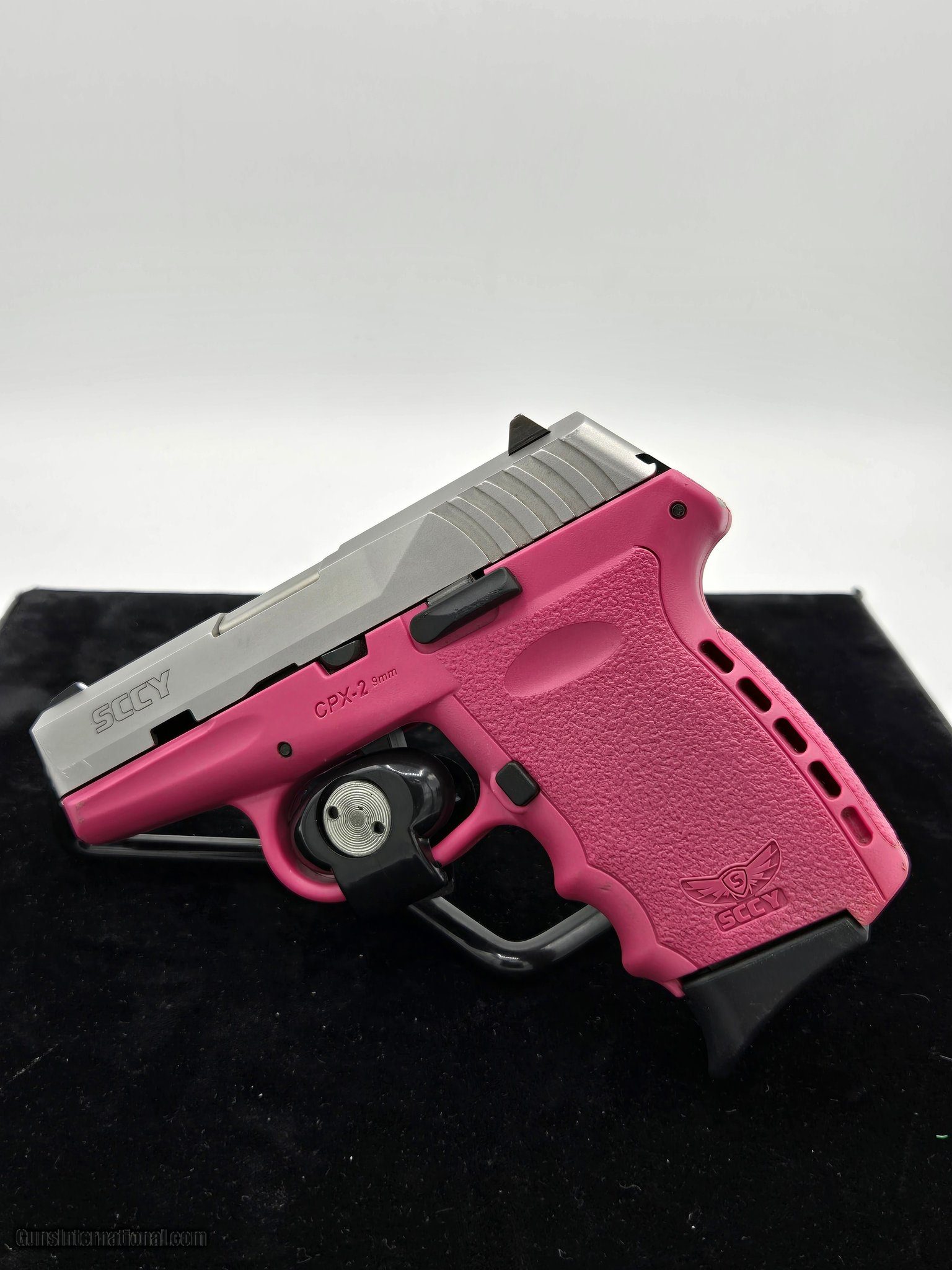 Description: Guns Listing ID: 487540 Sccy CPX2 Pink and silver Chambered in 9mm No box Comes with one 10 round mag 1130983 SUE IM SOLD Manufacturer: SCCY Model: cpx 2 Caliber Info: 9MM LUGER (9x19 PARA) Condition: Used - Non-Certified Barrels: 3.5 Finish: pink |