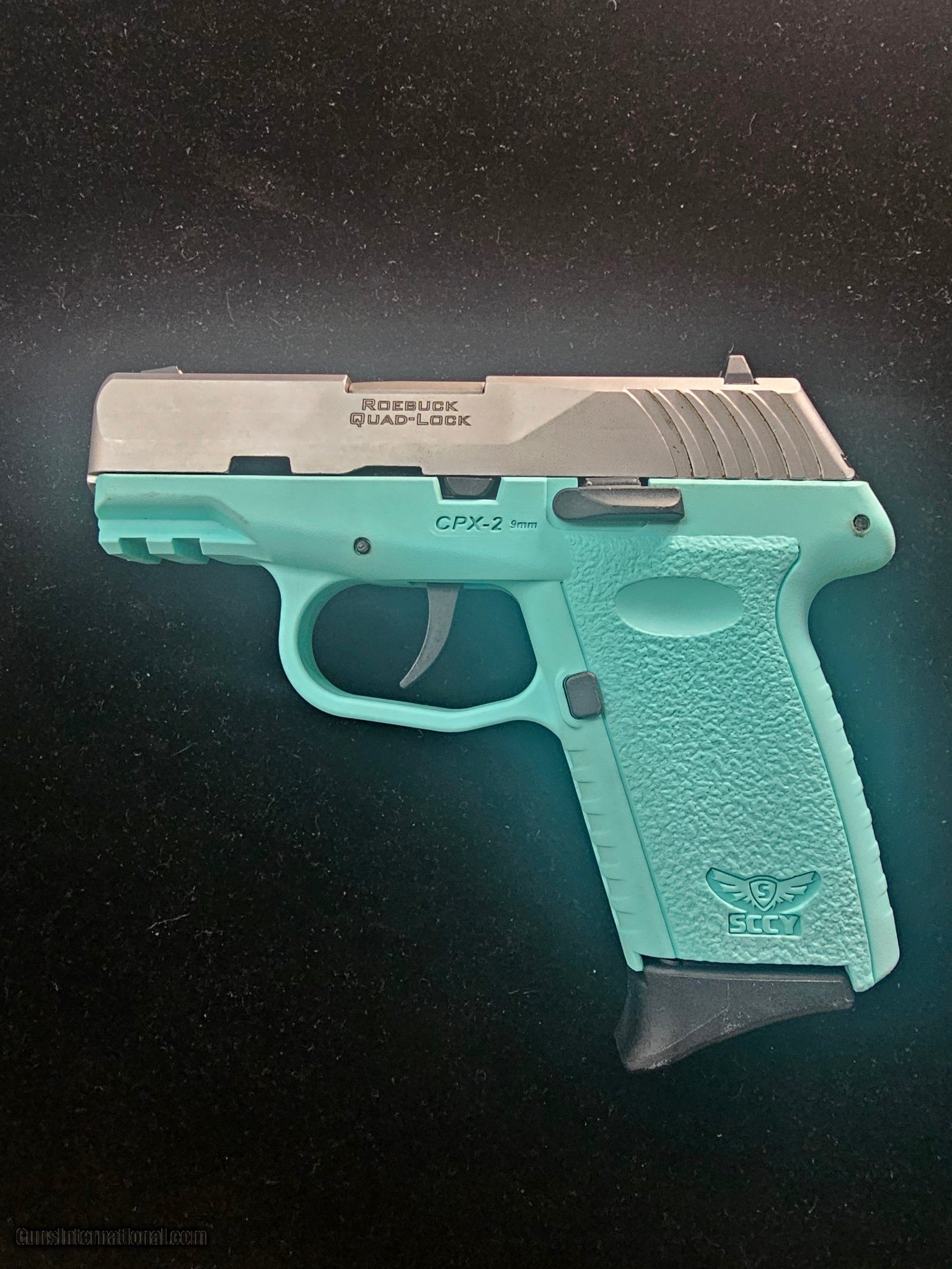Description: Guns Listing ID: 489679 The SCCY CPX-2 9mm Roebuck Quad-Lock is a variant of the popular SCCY CPX-2 series, featuring an innovative design enhancement to improve performance and reliability. Here‚‚s a detailed description of this specific model: Key Features: Color: Tiffany Blue Caliber: 9mm Luger Action: Double-action-only (DAO) Magazine Capacity: 10-round magazine, with a total capacity of 10+1 rounds. Barrel Length: 3.1 inches Overall Length: 6 inches Height: 4.0 inches Width: 1.0 inch Weight: 15 ounces (unloaded) Frame: Polymer frame, providing lightweight yet durable construction for comfort during carry and use. Slide: Steel slide with a Roebuck Quad-Lock system, designed to improve the locking mechanism and increase the longevity and durability of the firearm. Roebuck Quad-Lock System: The Roebuck Quad-Lock system is a unique locking mechanism designed to enhance the performance and accuracy of the pistol. This system improves the alignment and lockup between the slide and the frame, which helps reduce wear and tear, ensuring the gun maintains its reliability and accuracy over time. This system also minimizes the possibility of \"frame flex,\" a phenomenon that can sometimes affect the consistency and accuracy of semi-automatic pistols, especially those with polymer frames. Safety Features: Internal Safety: Includes a striker-block mechanism to prevent accidental discharge, as well as a firing pin safety. Manual Safety: The CPX-2 typically comes with a manual safety lever located on the frame, giving users extra assurance when handling the firearm. Trigger Safety: The CPX-2 features a trigger safety to prevent unintentional firing if the trigger is not deliberately pressed. Sights: Fixed 3-Dot Sights: Designed for quick and easy target acquisition, making it easier for users to line up their shots during self-defense situations or target practice. Performance and Use: The SCCY CPX-2 Roebuck Quad-Lock is designed for personal defense and concealed carry, providing a small and lightweight option that still offers great reliability. Its manageable recoil and ergonomic grip make it a solid choice for shooters looking for a compact pistol without sacrificing performance. Overall: The SCCY CPX-2 Roebuck Quad-Lock is an evolution of the standard CPX-2, taking advantage of the innovative locking mechanism for enhanced durability and accuracy. Whether you‚‚re using it for self-defense or recreational shooting, this pistol offers a solid balance of reliability, safety, and performance in a compact and lightweight design. Would you like to find where you can purchase one or have further questions about this specific mode SOLD Manufacturer: SCCY Model: CPX-2 Caliber Info: 9MM LUGER (9x19 PARA) Condition: Used - Non-Certified Barrels: 5 BARREL Finish: TIFFANY BLUE |
