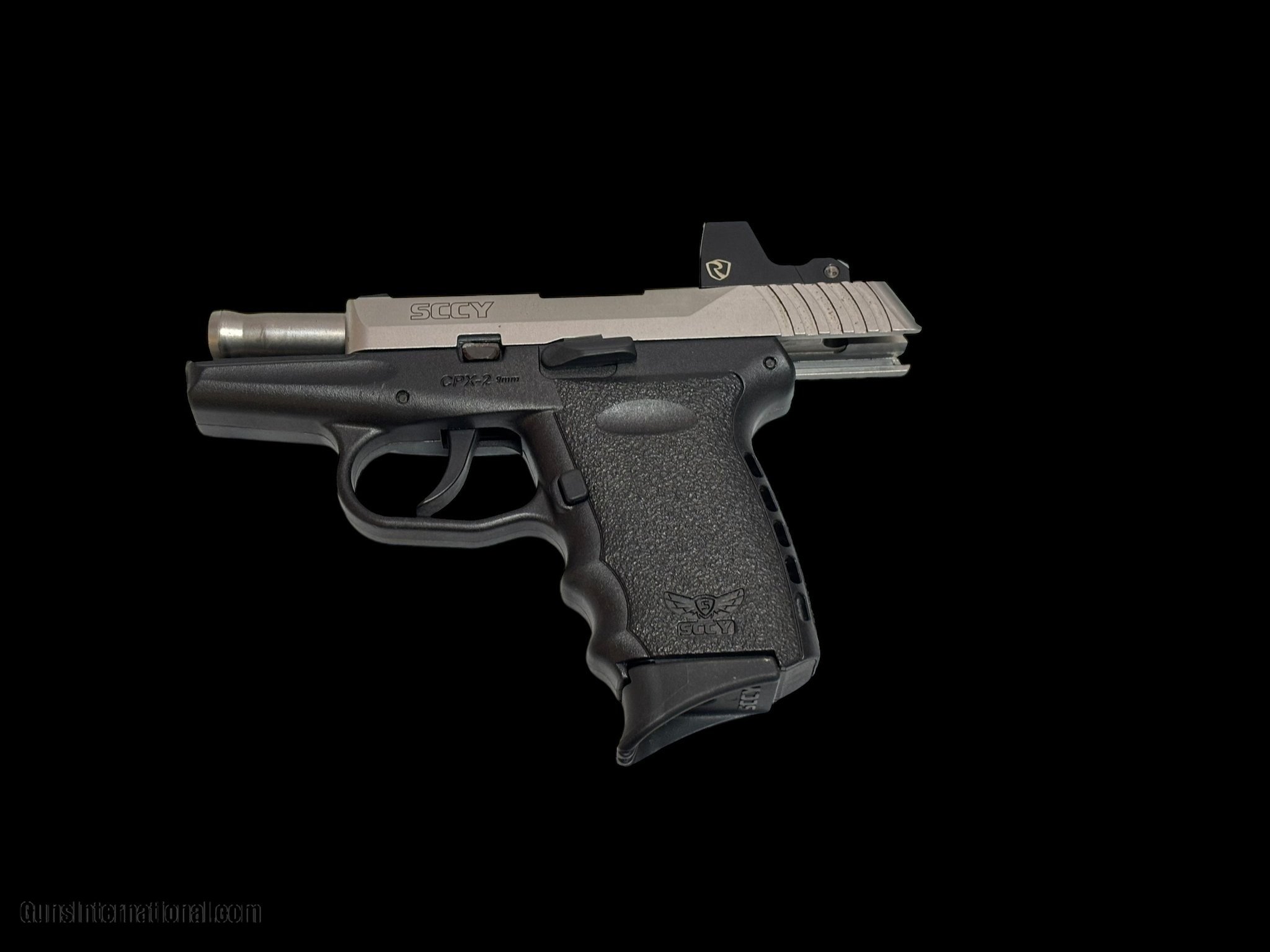 Description: Guns Listing ID: 547017 SCCY CPX-2 9mm W/red dot, case, and extra mag NO OTHER ACCESSORIES INCLUDED #18862 SOLD Manufacturer: SCCY Model: CPX-2 Caliber Info: 9MM LUGER (9x19 PARA) Condition: Used - Non-Certified Barrels: 3.1" BARREL Action: SEMI AUTOMATIC Finish: two tone |