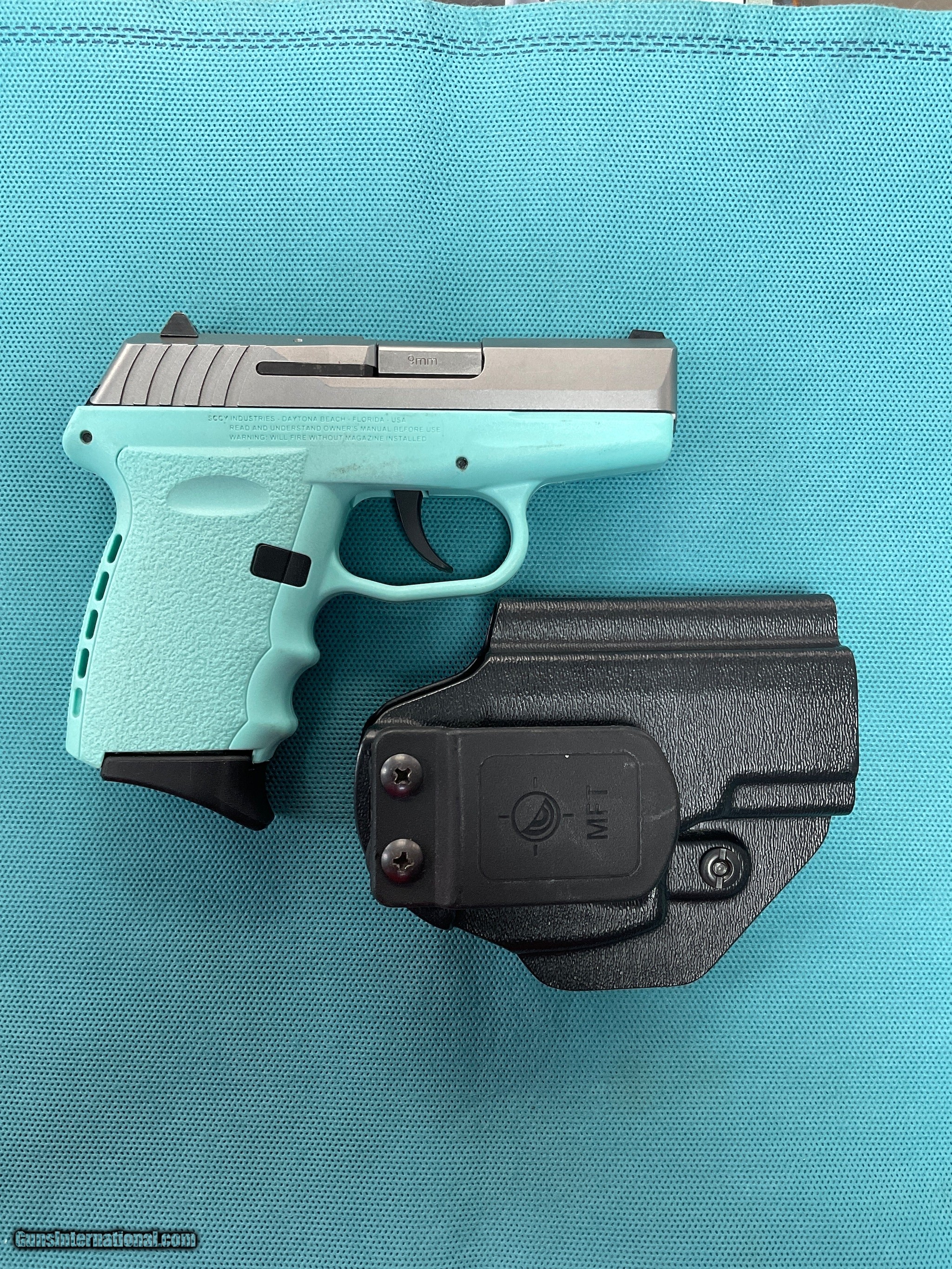 Description: Guns Listing ID: 1099620 The SCCY CPX-2 9mm Semiautomatic Pistol features a polymer frame with a stainless finish and has fixed 3-dot sights. The pistol is designed with a 10+1-round capacity and includes a trigger guard lock and 2 magazines. Features and Benefits Semiautomatic DAO with a 10+1-round capacity Polymer frame with a stainless finish Fixed 3-dot sights Trigger guard lock and 2 magazines included Specifications Action: Double Metal finish: Stainless Product weight: 15 ounces Manual Safety: No Activity: Shooting Barrel length (in.): 3.1 Handedness: Ambidextrous Product Type: Pistol Product length (in.): 5.7 Front sight: Fixed 3 dot Magazine capacity: 10 Rear sight: Fixed 3 dot Caliber: 9mm Rifle Ammo Type: Centerfire SOLD Manufacturer: SCCY Model: CPX 2 WITH HOLSTER Caliber Info: 9MM LUGER (9X19 PARA) Condition: Used - Non-Certified Barrels: 3 BARREL Finish: TURQUOISE |