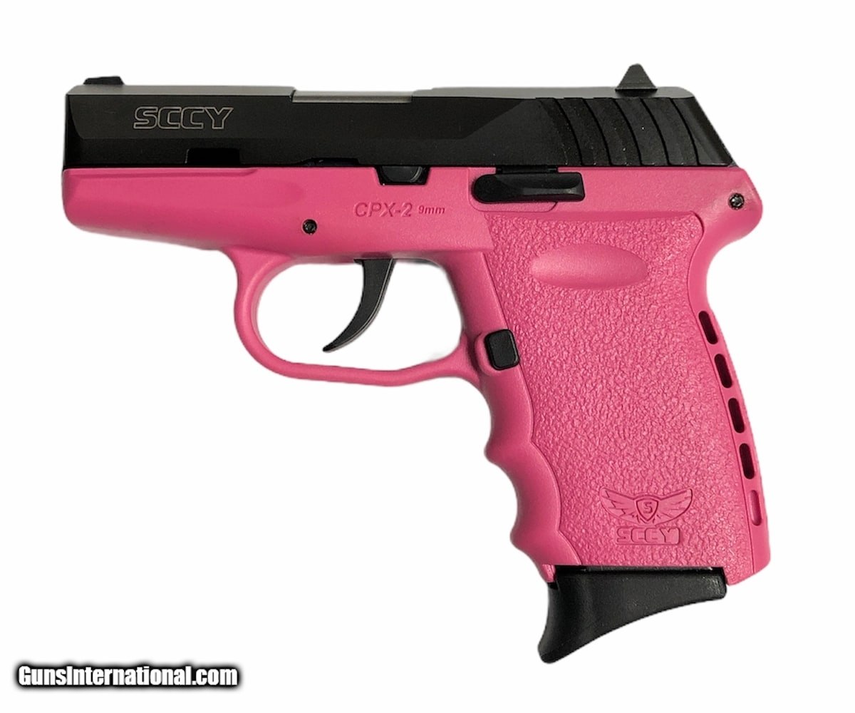 Description: Guns Listing ID: 53477 The SCCY CPX-2 is a polymer-framed semi-automatic pistol chambered in 9mm with a 101 round capacity. A 3.1 barrel is adorned with three dot sights adjustable for windage. The Zytel polymer frame and grip includes ergonomic finger grooves and an integral recoil cushion on the backstrap. Weighing in at just 15 ounces the CPX-2 is a great choice for concealed carry. Details Action DA - Caliber 9mm - Capacity 10 - Material Zytel Polymer - Finish Black NitridePink - Sights 3-Dot Adjustable - Twist 116 - Barrel Length 3.1 - Overall Length 5.7 - Weight 15 oz. SOLD Manufacturer: SCCY Model: CPX-2 Caliber Info: 9MM LUGER (9X19 PARA) Condition: new Barrels: 3.1 BARREL |