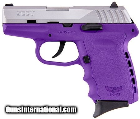 Description: Guns Listing ID: 333794 The SCCY CPX-2 is a polymer-framed semi-automatic pistol chambered in 9mm with a 101 round capacity. A 3.1 barrel is adorned with three dot sights adjustable for windage. The Zytel polymer frame and grip includes ergonomic finger grooves and an integral recoil cushion on the backstrap. Weighing in at just 15 ounces the CPX-2 is a great choice for concealed carry. Action DAO - Caliber 9mm - Capacity 10 - Finish GreyPurple - Barrel Length 3.1\" - Overall Length 5.7\" - Weight .9 Lbs. - Barrel machined from bar stock with 7 lands and grooves having a 16-1 right hand twist. - Receiver 7075-T6 aircraft grade heat treated aluminum alloy machined from bar stock. - GripFrame Made from Zytel polymer with ergonomic finger grooves and an integral RE-COIL CUSHION on the back-strap. - Recoil Spring System all steel fully encapsulated for ease of disassembly and reassembly. - Slide LockRelease steel with a Zytel over molded polymer extension for ease of operation. -3 dot sight system steel rear sight adjustable for windage only with locking screw. - Hammer firing system double action only internal hammer with inertial firing pin to prevent accidental discharge if dropped. - Double action trigger specifically designed for shooter comfort and accuracy by designing the system to have a smooth effortless consistent 9 pound trigger pull. - Magazine included with (2) double stack 10 round capacity magazines with finger extension base installed and 2 flat magazine bases included. - Trigger Guard Lock custom designed to properly fit and be child resistant. Includes 2 keys. SOLD Manufacturer: SCCY Model: CPX-2 Caliber Info: 9MM LUGER (9X19 PARA) Condition: new Barrels: 3.1" barrel Finish: PURPLE |