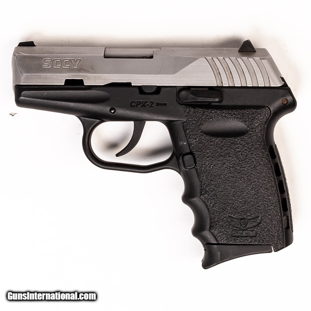 Description: Guns Listing ID: 488495 Affordable and dependable, the SCCY CPX-2 is a great option for concealed carry. If you‚‚re looking for the power of the 9mm in a compact package this is a great choice. This handgun comes with two 10-round magazines, a holster, and the original box with the manual SOLD Manufacturer: SCCY Model: CPX-2 Caliber Info: 9MM LUGER Condition: Used - Certified Barrels: 3.1 BARREL Finish: TWO-TONE STAINLESS |