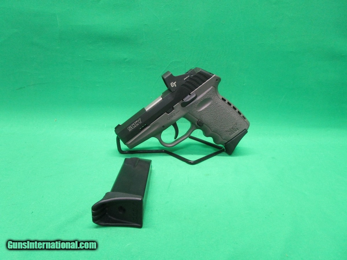 Description: Guns Listing ID: 758503 We have a used SCCY CPX-2 semi-automatic pistol for sale. This is chambered in 9mm with a 3.25\" barrel. It comes as shown in pictures with two magazines and a Crimson Trace red dot. This is in Good Used Condition. Overall we would grade at approx 95%. Check out the pictures and feel free to call or email with any questions. SOLD Manufacturer: SCCY Model: CPX-2 Caliber Info: 9MM Condition: Used - Non-Certified Barrels: 3.25 BARREL Finish: BLACK AND GREY |