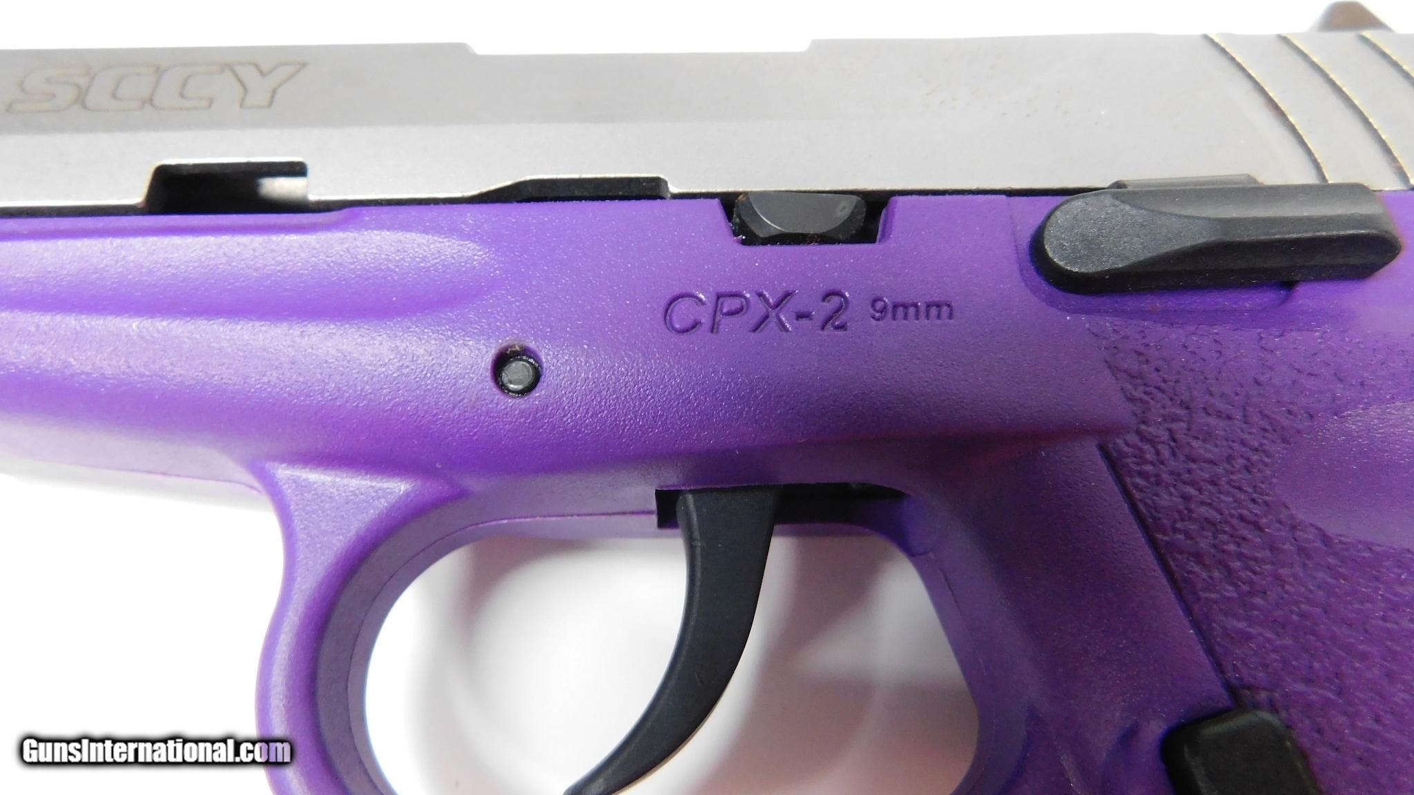 Description: Guns Listing ID: 826489 Excellent used condition SCCY CPX-2TTPU, purple with stainless slide, 9mm, in box, two magazines and trigger lock. AEZ SOLD Manufacturer: SCCY Model: CPX-2 Caliber Info: 9MM LUGER (9X19 PARA) Condition: Used - Non-Certified Barrels: 3.1 BARREL Finish: PURPLE |