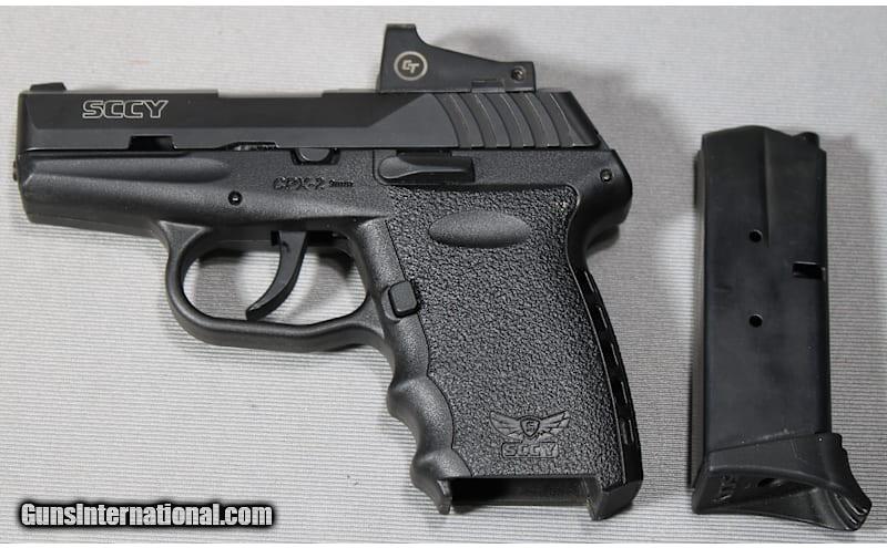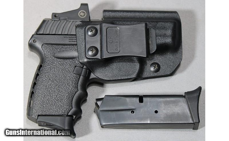 Description: A SCCY Industries CPX-2, chambered in 9mm. Pistol is in good condition, showing general wear on the slide and barrel. Comes with an already mounted Crimson Trace red dot sight, two 10 round magazines, and one IWB kydex holster. 9MM Metal Condition: Good Bore Condition: Bright Barrels: 3 inch Triggers: Double Action Only Weight: 1 lbs Sights: Crimson Trace Red Dot Sight w/ White Dot Front Sight Item Location: Council Bluffs, IA Price: $199.99 Contact Seller |