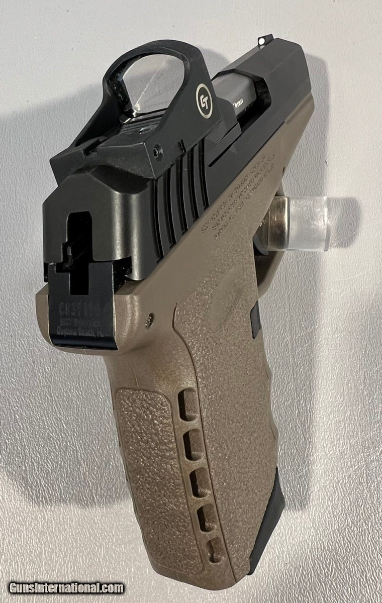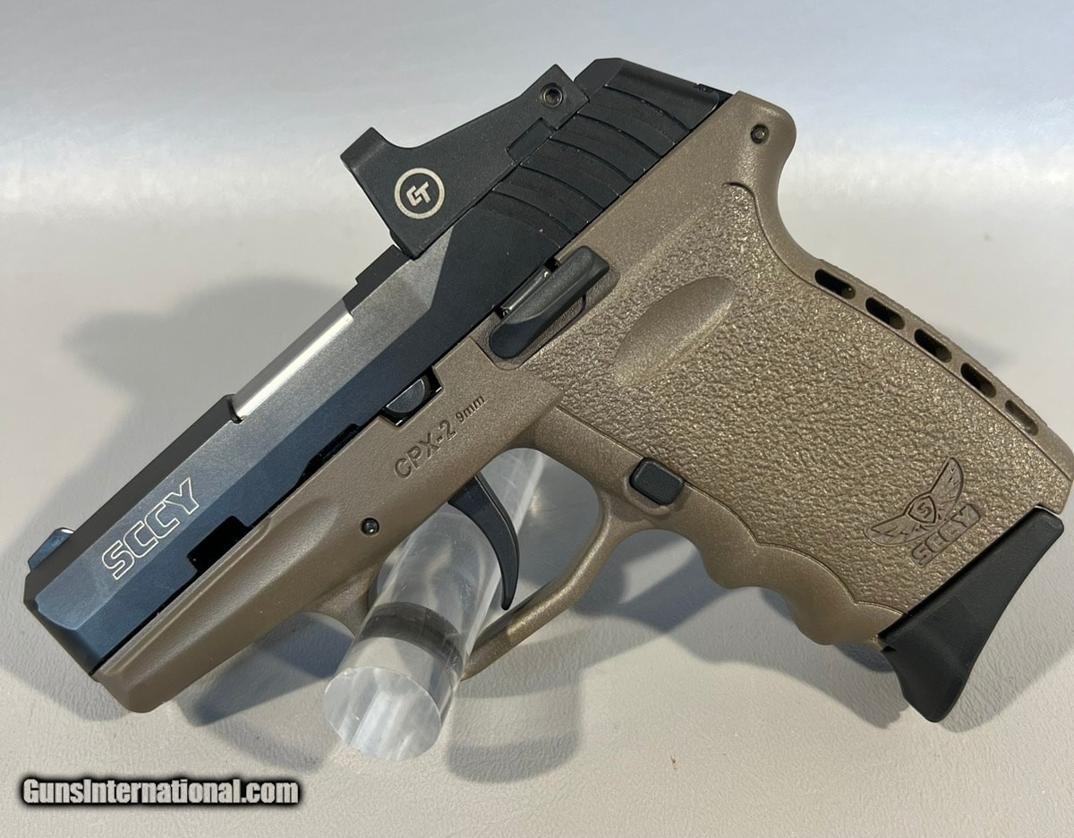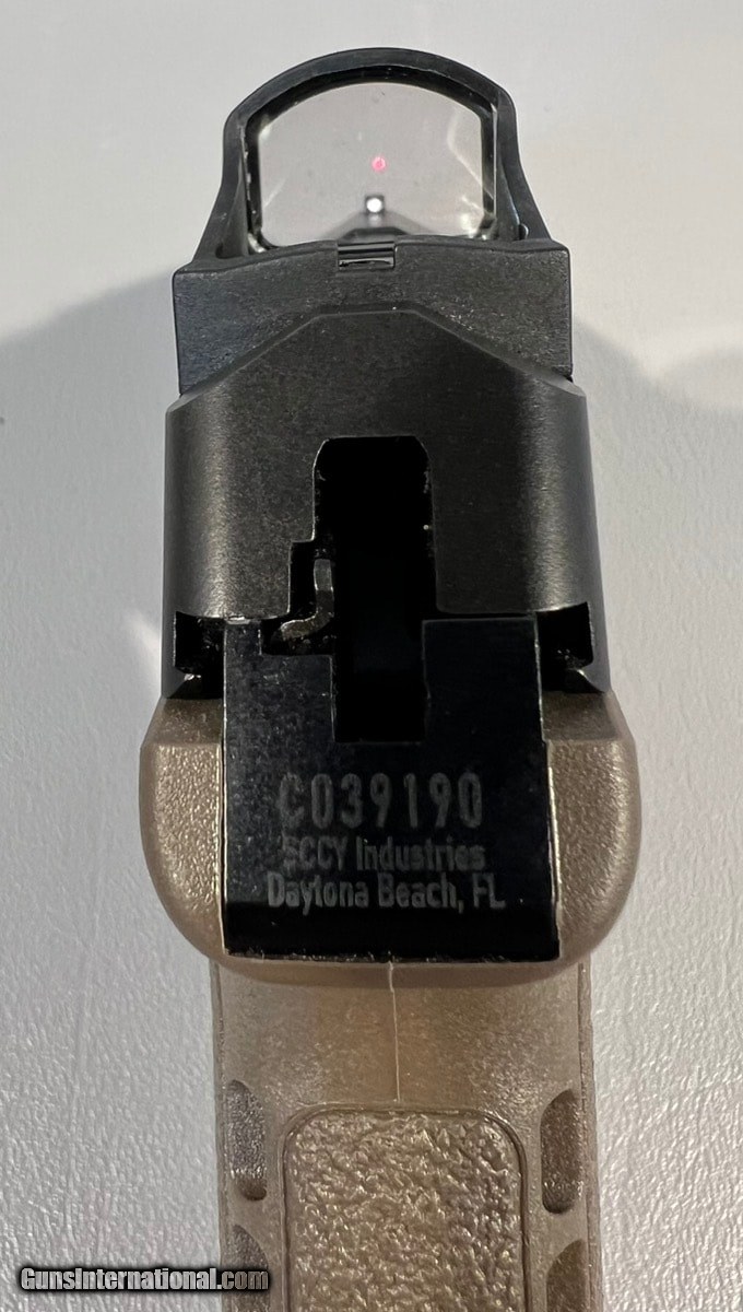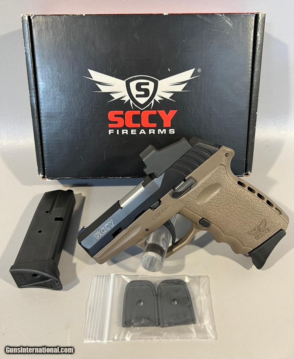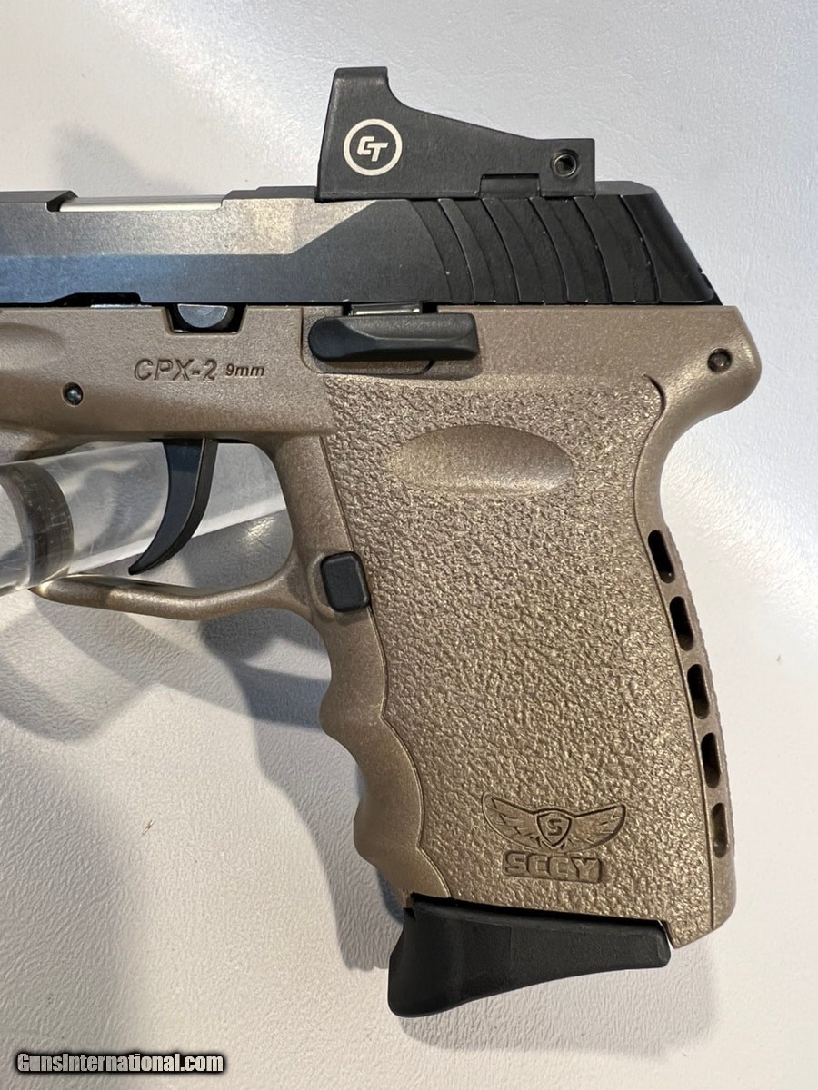 Description: Guns Listing ID: 692694 SCCY CPX-2 RD FEATURES SCCY‚‚s CPX-2 is designed for concealed carry but large enough to get a good firm grip. It is considered to be one of the best priced, precision made \"Pocket Pistols\" on the market. Chambered for 9mm, it has a 3.1\" barrel with a 1:16\" right hand twist. The receiver is made from 7075 T6 aircraft grade heat treated aluminum alloy. The Zytel polymer frame features ergonomic finger grooves and an integral recoil cushion on the backstrap. The slide is machined from stainless steel with a Zytel over molded polymer extension for ease of operation. This DAO has an internal hammer with inertial firing pin to prevent accidental discharge, and an external thumb safety with a guard molded into the frame. It has a smooth, consistent 9-pound trigger pull. It comes with two 10-round magazines with finger extensions bases installed and two flat magazine bases. This model comes with a red dot. SCCY CPX-2 RD SPECIFICATIONS Manufacturer: SCCY Model: CPX-2 Caliber: 9mm Luger Series: RD Frame Finish: Flat Dark Earth Action: Double Action Only Slide Description: Black Nitride Stainless Steel Capacity: 10+1 Frame Material: Polymer Grips: Flat Dark Earth Polymer Hand: Ambidextrous Includes: RDS Overall Length: 6\" Safety: No Manual Sight Configuration: Iron Sight Style; Fixed Trigger: 9 lb Twist: 1:16\" Weight: 17.50 oz Barrel Length: 3.10\ SOLD Manufacturer: SCCY INDUSTRIES Model: CPX-2 Caliber Info: 9MM Condition: Used - Non-Certified Barrels: 3.1 BARREL Finish: FDE |