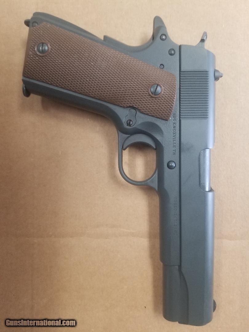 Description: Guns Listing ID: 523555 THIS PISTOL HAS ONE MAGAZINE. COMES WITH A NEW SOFTCASE. ONE VISIBLE MARK ON THE LEFT SIDE OF THE SLIDE NEAR THE FRONT SIGHT. GREAT SHAPE OVERALL. SOLD Manufacturer: SDS IMPORTS Model: 1911 A1 Caliber Info: .45 ACP Condition: Used - Non-Certified Barrels: 5 BARREL Finish: BLACK |