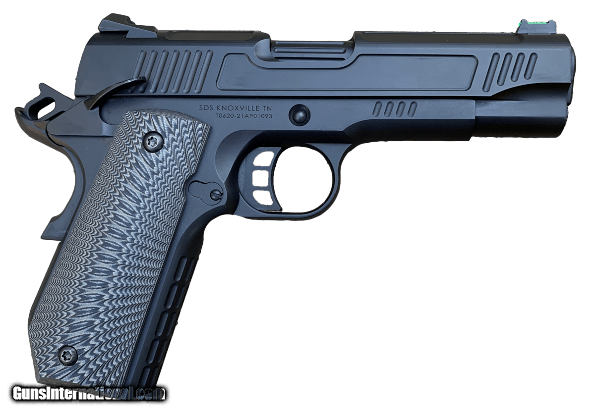Description: Guns Listing ID: 400541 The SDS Imports 1911 Bantam features bobtail aluminum frame with textured front & back straps, ambidextrous safety, bobtail mainspring housing and 70 series internals. Its Commander length slide features lightening cuts, combat sights and a flared & lowered ejection port. Included are two flush fit 9-round mags and cleaning kit. SOLD Manufacturer: SDS IMPORTS Model: 1911 Bantam Caliber Info: 9MM LUGER (9X19 PARA) Condition: new Barrels: 4.25" barrel Finish: BLACK CERAKOTE |