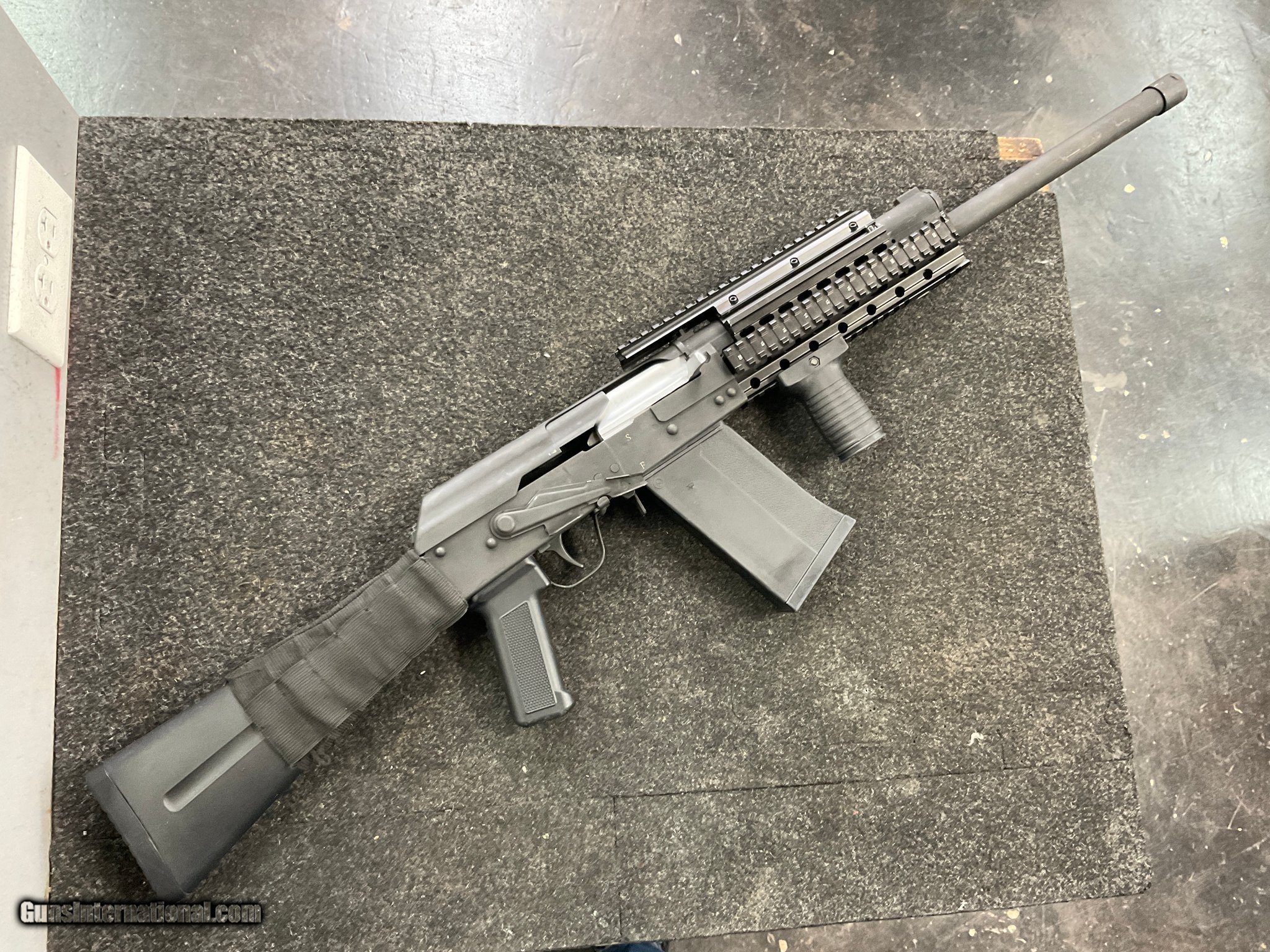 Description: Guns Listing ID: 1281774 Custom RAIL FORE-GRIP INCLUDED The Lynx 12 is the next evolution in 12 Gauge Kalashnikov styled shotguns. This shotgun is similar to the Russian IZ 109 AK shotgun in design but offers many more shooter friendly features. The Lynx 12 interchanges with most Saiga parts like stick mags, handguards & muzzle devices. You can easily upgrade the rear stock to a Tactical set up if you desire. Firearm Features Left side scope rail for quick attach/detach scope mounts Standard Right side charging handle Bolt hold open button. Rear V with a bead front sight Any aftermarket AK pistol grip will fit.Most AK standard stocks with fit without modification (922r applies) AK Safety Standard AK triggers fit with only slight modification to the hammer. Barrel threaded for Saiga style compensators. Front forearm can be replaced with Saiga rails and aftermarket forearms. Four position gas system. Off, Low, Medium and High. SOLD Manufacturer: SDS IMPORTS Model: LH12 Condition: Used - Non-Certified Barrels: 18.5 BARREL Gauge Info: 12 GA Finish: BLACK |