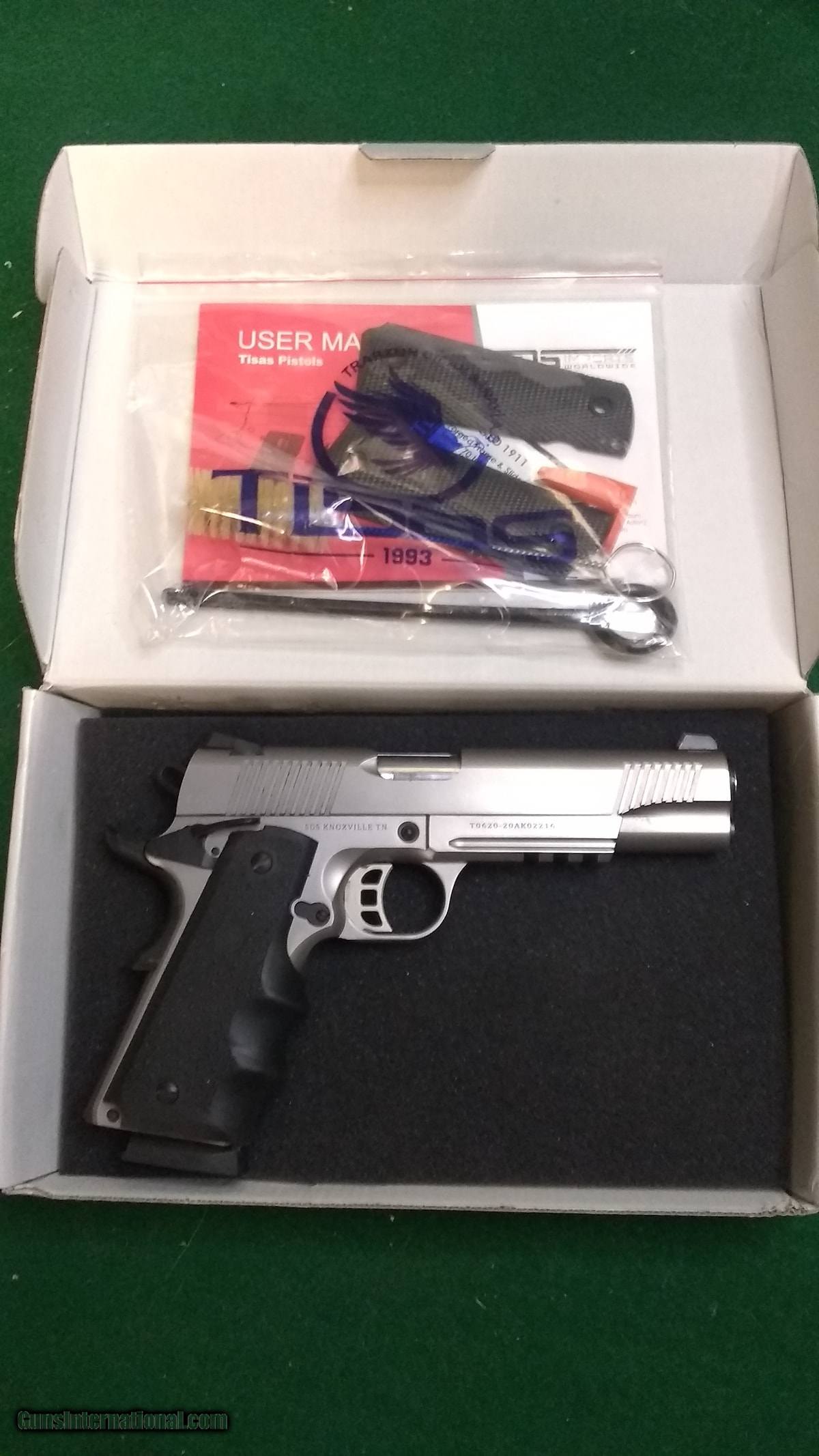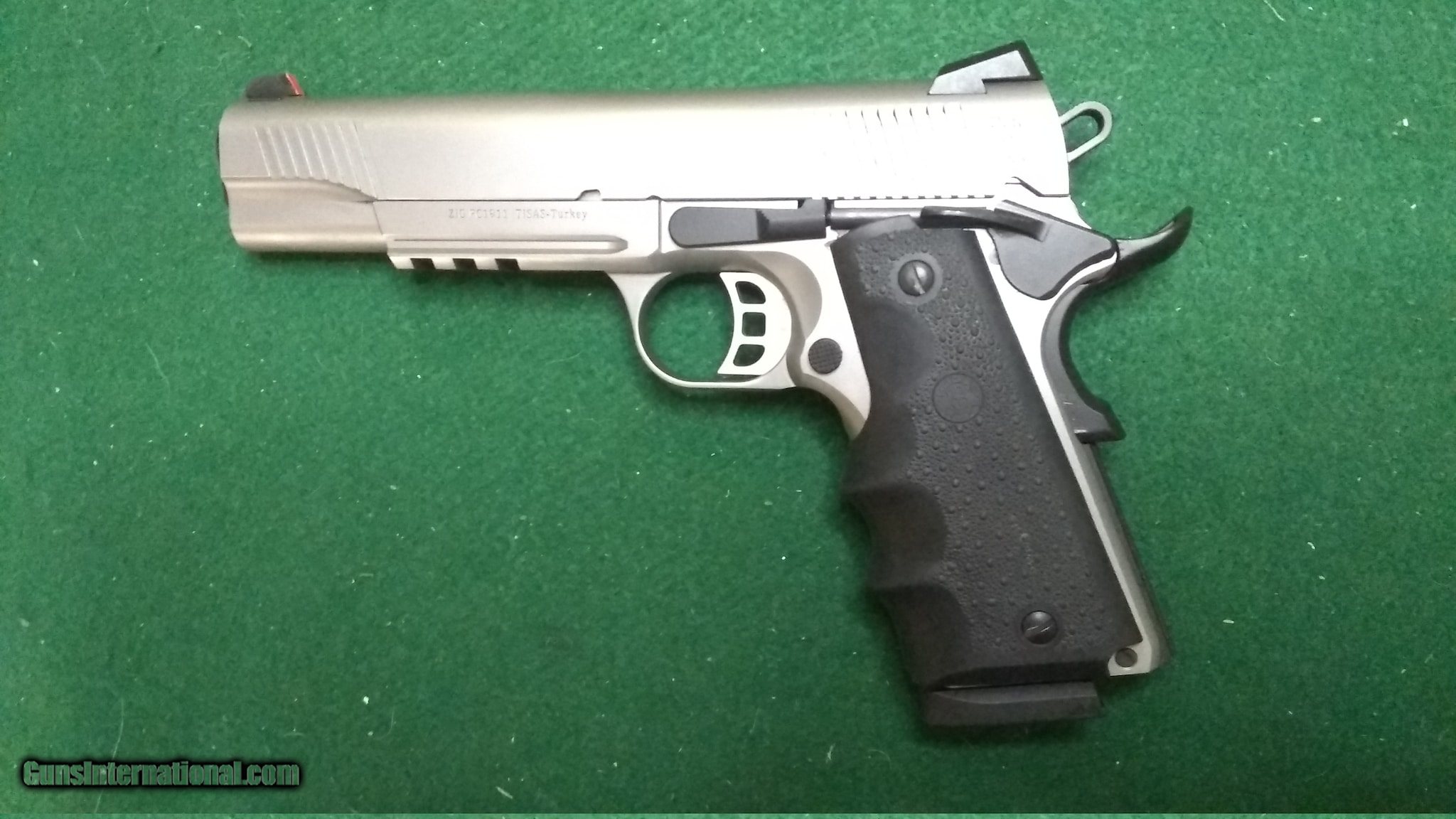 Description: Guns Listing ID: 557070 Item Number: 1911DSS45R Semi-Auto Pistol .45 ACP 8 Round Magazine 5\" Hammer Forged Barrel Hammer Forged Stainless Steel Slide and Full-Size Frame M1913 Style Accessory Rail Front and Rear Slide Serrations Flared and Lowered Ejection Port Skeletonized Hammer and Trigger Ambidextrous Extended Safety 3-Dot Low-Profile Novak Style Cut Sights Series 70 Internals Stainless Steel Finish SOLD Manufacturer: SDS IMPORTS Model: SS45 Caliber Info: .45 ACP Condition: Used - Non-Certified |