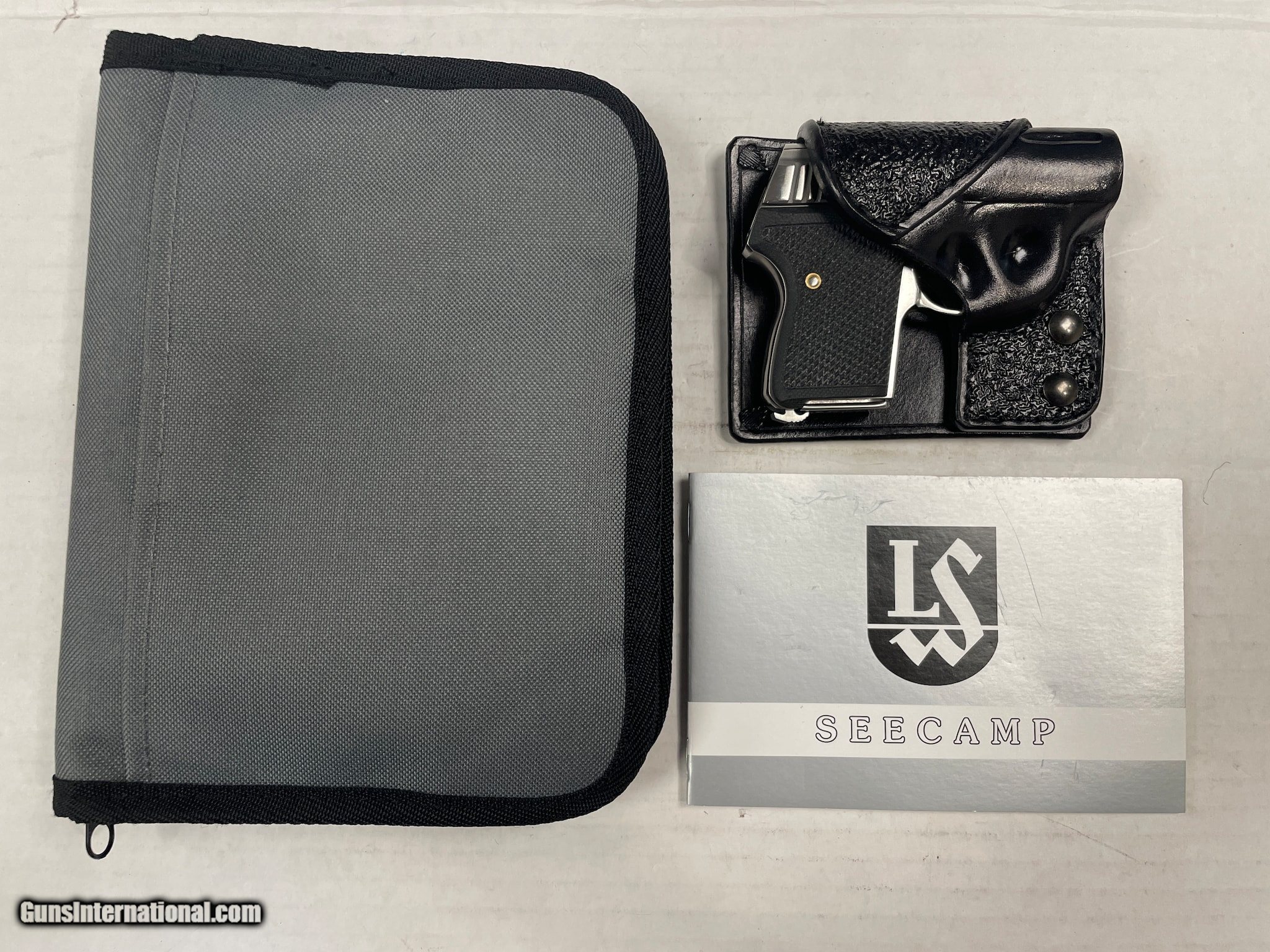 Description: Guns Listing ID: 1062412 Seecamp LWS 32acp Semi Automatic Pistol -Firearm is in great condition -Comes with soft case, operation manual, holster The Seecamp LWS 32 is a highly sought-after pocket pistol known for its compact size, lightweight design, and reliability. Thanks to our compact design, the LWS 32 is the ultimate concealed carry. Its stainless steel construction and double action-only trigger make it a durable and safe choice for personal protection. The LWS 32 is chambered in .32 ACP, a caliber known for a balance of stopping power and low recoil, making it easy to handle for shooters of all skill levels. SOLD Manufacturer: SEECAMP Model: 32ACP-LWS Caliber Info: .32 ACP Condition: Used - Non-Certified Barrels: 2.06 BARREL Finish: STAINLESS & BLACK |