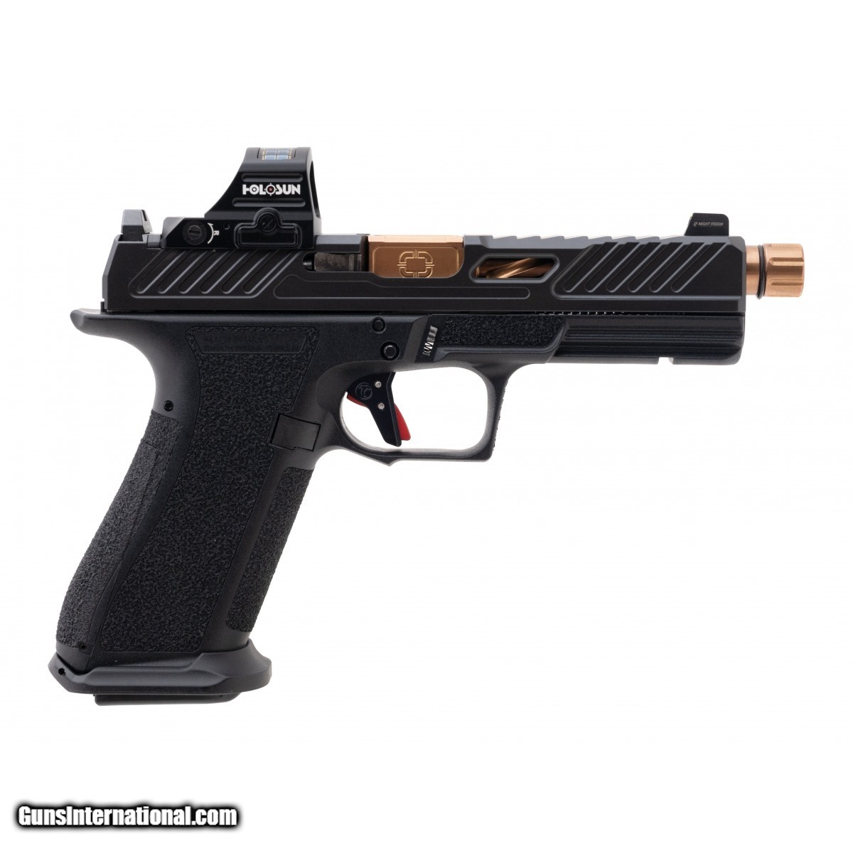 Description: " SN: SSX059953. Modern production. 9x19 parabellum with a 5"" barrel, bore is excellent. Full size handgun with optic ready slide, bronze threaded barrel, Timney trigger, flared magwell and suppressor ready sights Overall excellent condition. Comes with Holosun HS507C X2 red dot. Comes with range bag and extra magazine. SOLD |