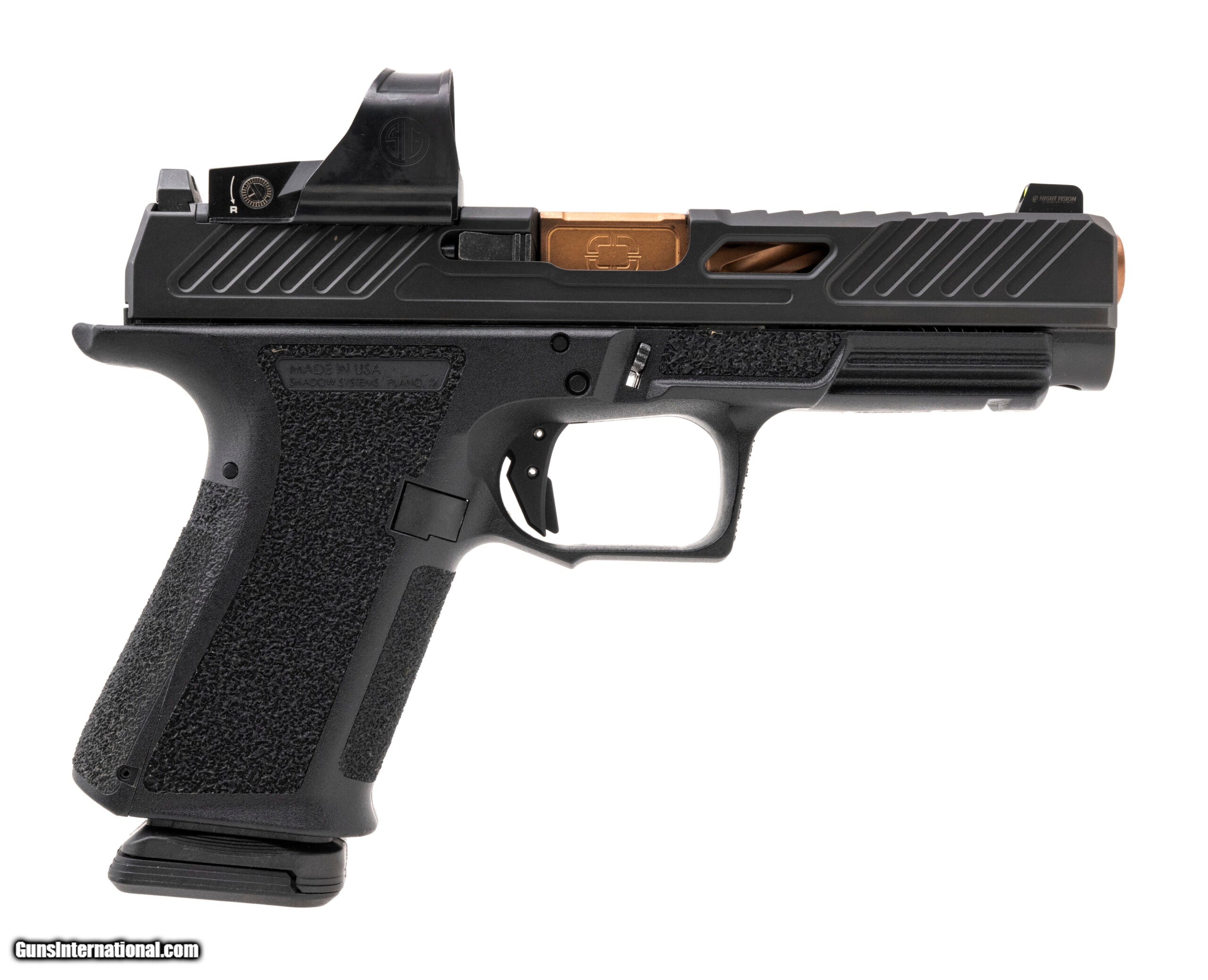 Description: "SN: SSC055707. Modern production, 9mm with a 4.49"" fluted barrel. Full size striker fired pistol with an Sig Romeo Pro red dot optic. Overall condition is very good. Comes with a Shadow Systems range bag and two extra magazines. SOLD |