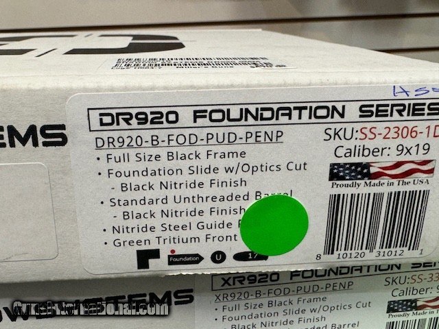 Description: new DR920 Foundation 9mm 4.5" bbl 2 mags new in box UPC 810120310121 MPN SS-2306-1D Brand Shadow Systems Main Model Shadow Systems DR920 Model DR920 Foundation Caliber 9mm Capacity 17 + 1 Features Optics Ready Foundation Slide, Polymer Guide Rod/Optic Plate, Flat Face Polymer Trigger Type Semi-Auto Pistol Action Striker Fired Finish Black Nitride Stock Polymer Frame Sight FS: Green Tritium RS:Black Safety No Manual Safety Barrel Length 4.5" Overall Length 7.63" Weight 23 oz. Number Of Mags 2 Buyer pays shipping Millers Gun Center Located in New Castle, Delaware "Home of TAX-Free shopping" No Credit Card Fees Send Gun international inquiry and then call 302-328-9747 to complete your purchase SOLD Serial Number: SSX072367 |