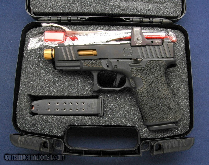Description: This one was made up on a Glock 19 frame, that's why I think it may be an early one, before SS made their own frames. It comes in a fitted Shadow Gunworks box, with two 15 round Glock 19 mags and a safety lock. It has a Trijicon RM05 green dot sight on top, with a gold TiN coated fluted threaded barrel. The green dot co witnesses the standard iron sights, sitting right on top of the front sight when they are lined up. The Glock frame has been recontoured and re textured, making a very comfortable package. Good trigger too. Seriously good to go here. $40 shipping to the lower 48, 3% surcharge for using a CC. If you choose to pay with a personal check, we will hold the item for up to 10 days to make sure that it clears. Please expedite such pymts as we will hold an item on your word for 5 days. SOLD Handgun Caliber: 9x19mm Parabellum (9mm Luger, 9x19mm NATO) |