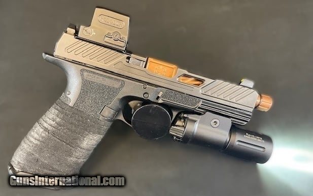 Description: Guns Listing ID: 532416 Shadow Systems DR920 9X19 w/Holosun 509T GR, Original Case/Box - 3 Mags Shadow Systems SS2009 DR920 Elite Full Size 9mm Luger 17+1, 5\" Bronze TICN Match Grade/Spiral Fluted/Threaded Barrel & Black Nitride Optic Cut/Serrated/Window Cut Stainless Steel Slide, Black Polymer Frame w/Beavertail & Picatinny Rail Designed with officers and servicemembers in mind, the full-sized DR920 is a duty-ready pistol designed to work with existing G17 holsters, magazines and gear. The DR920 frame features interchangeable backstraps; extended beavertail; aggressive trigger guard; wrap-around aggressive grip texture; slide serrations in the front and rear and a thinned profile at grasping locations; match-grade, threaded barrel is conventionally rifled, spiral-fluted; drop-safe, flat-faced aluminum trigger with a crisp, tactile reset; optic cut models allow shooters to mount the mini red dot optic of their choosing. The optic cut on the DR920 can accommodate most major brands of RDS optics directly mounted to the slide, without intervening plates or adapters. Includes one magazine. Brand Shadow Systems Category Pistols Series Elite Model DR920 Caliber 9mm Luger Barrel Length Range 5\" to 5.99\" Capacity 17+1 Action Striker Fire Frame Finish Black OAL 8.25\" Frame Material Polymer Slide Finish Black Nitride Slide Material Stainless Steel Sights Green Tritium Dot Front / Black Serrated Rear Slide Description Optic Cut / Serrated / Window Cut Barrel Finish Bronze TICN Barrel Material Steel Frame Size Full Size Grips Interchangeable Backstrap Trigger Pull Weight 4.50-5 lbs Height 5.25\" Includes 2 Magazines Safety No Thread Pattern 1 / 2\"x28 Barrel Description Match Grade / Spiral Threaded Barrel Length 5\" Max Capacity 17 Trigger Flat Face Weight 22.40 oz Frame Description Polymer Frame w / Beavertail & Picatinny Rail SOLD Manufacturer: SHADOW SYSTEMS Model: DR920 ELITE OPTIC READY THREADED Caliber Info: 9MM LUGER (9X19 PARA) Condition: Used - Non-Certified Barrels: 5 BARREL Action: SEMI AUTOMATIC Finish: BLACK Weight: 1.4 LBS. |