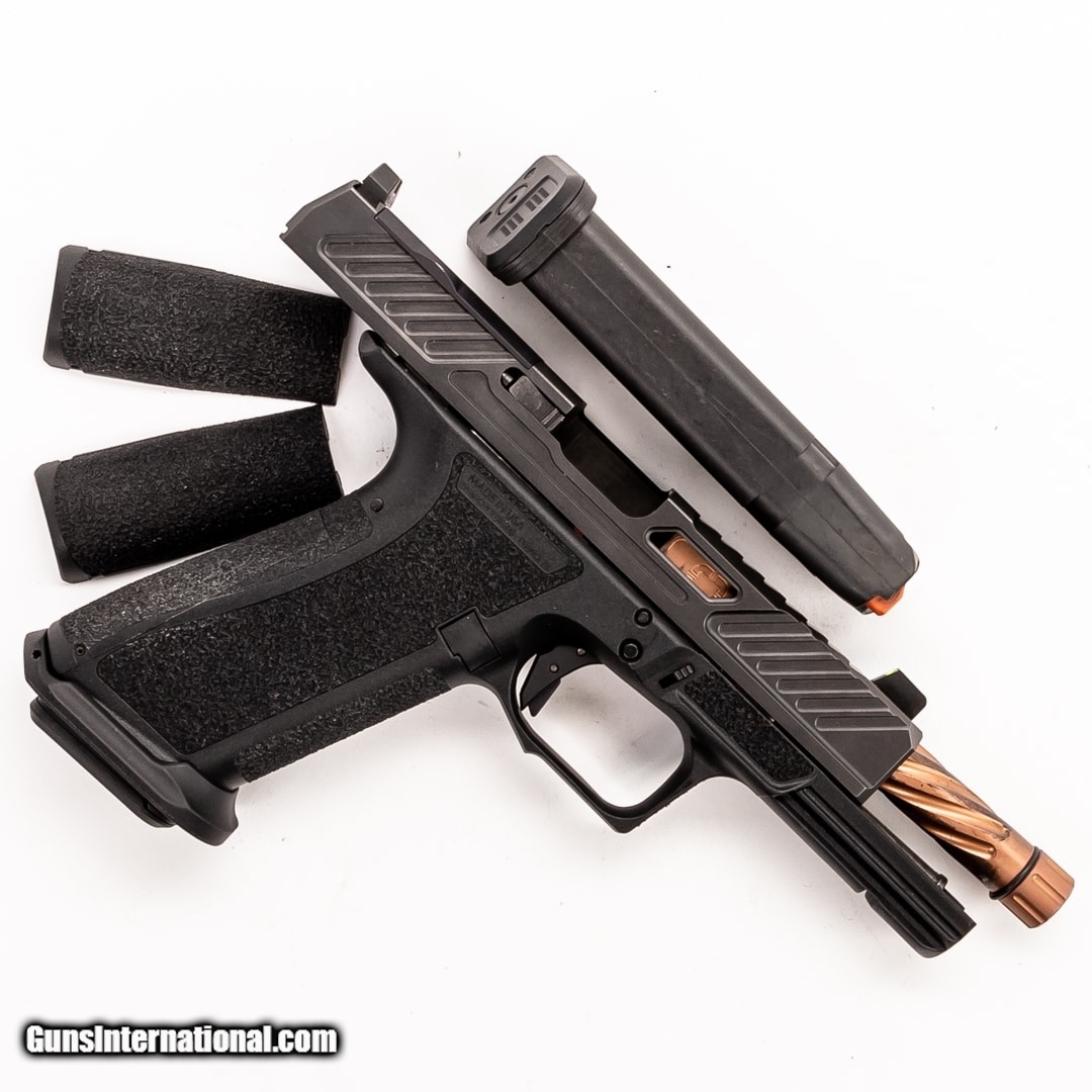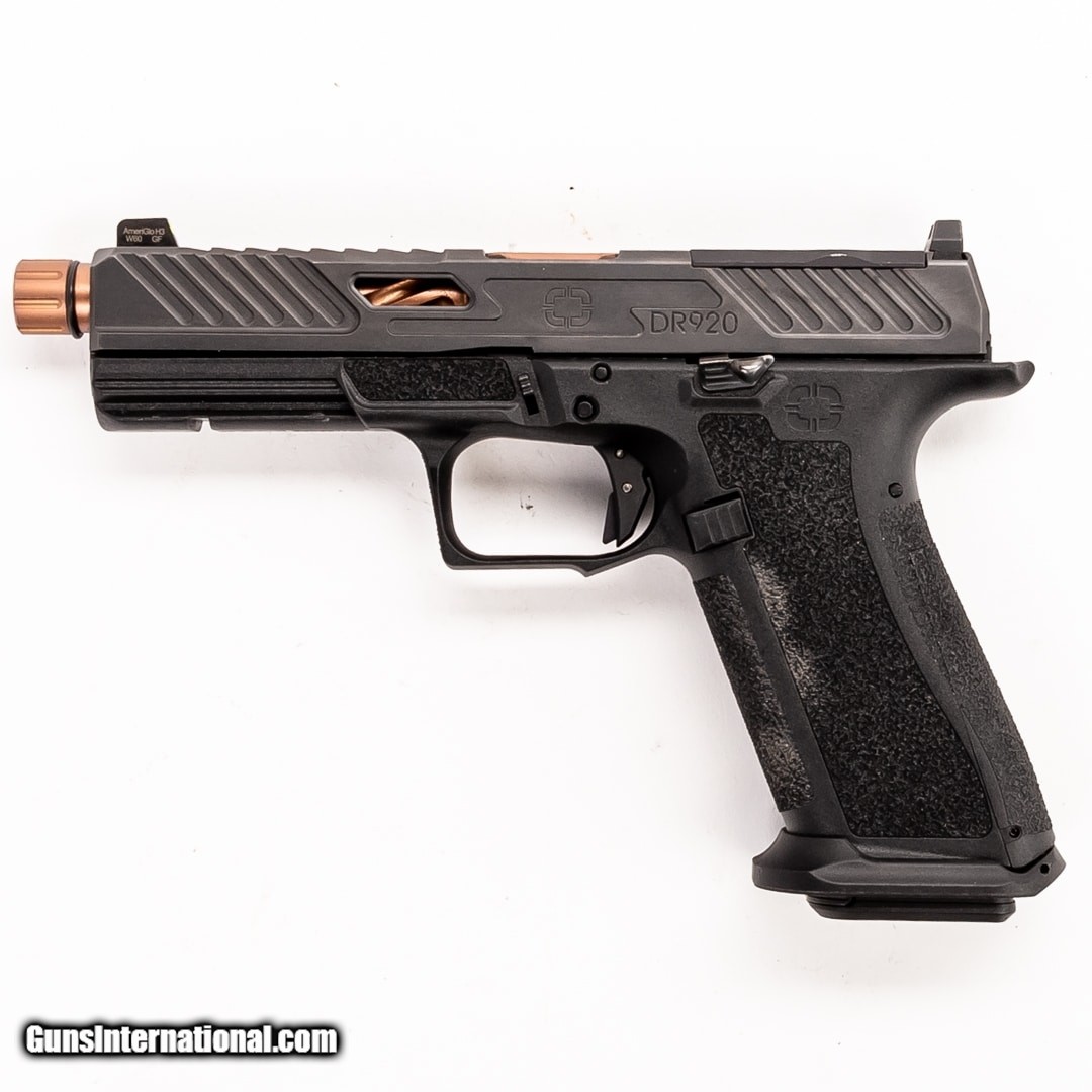 Description: Guns Listing ID: 369882 The Shadow Systems DR920 Elite is a semi-automatic striker fired handgun that was inspired by Glock pattern handguns. Shadow System firearms are incredibly smooth shooters, and are perfect for a wide variety of applications. 2-17 round Magpul magazines, the original soft case, manual, and additional backstraps are included. This model features night sights and a threaded barrel. SOLD Manufacturer: SHADOW SYSTEMS Model: DR920 ELITE Caliber Info: 9MM LUGER Condition: Used - Certified Barrels: 5 BARREL Finish: BLACK AND GOLD |