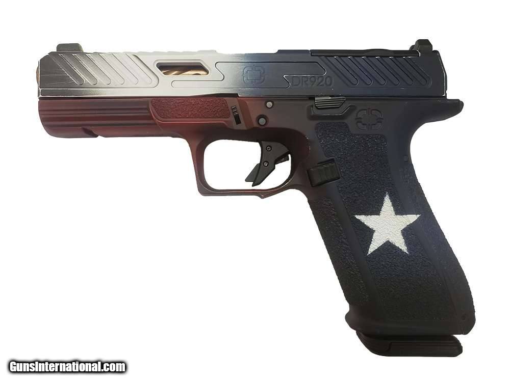 Description: Guns Listing ID: 561685 Designed with officers and service members in mind, the full-sized DR920 is a duty-ready pistol with features that are anything but basic. Designed to work with existing G17 holsters, magazines, and gear. The DR920 frame features interchangeable backstraps to allow a shooter to adjust the grip angle to fit their natural point of aim. The extended beavertail and aggressive trigger guard undercut provide unmatched recoil control, allowing quick, accurate follow-up shots. The frame’s wrap-around grip texture is aggressive enough to keep the gun firmly in the shooter’s grip without being uncomfortable for daily wear. The DR920 slide is designed for manipulation under stress, with directional serrations in the front and rear (as well as topside on some models) and a thinned profile at grasping locations. SOLD Manufacturer: SHADOW SYSTEMS Model: DR920 Caliber Info: 9MM LUGER (9X19 PARA) Condition: new Barrels: 4.5" barrel Finish: TEXAS FLAG |