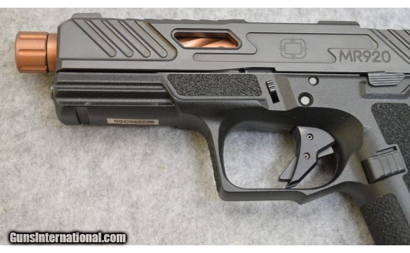 Description: The MR920 slide has a thinned profile at grasping locations and directional serrations in the front and rear (as well as topside on some models) for easy manipulation under stress.The MR920's frame features configurable ergonomics. Interchangeable backstraps allow shooters to adjust the grip angle to fit their natural point of aim. An extended beavertail and aggressive trigger guard undercut work to dramatically reduce recoil and increase controllability. The frame's wrap-around grip texture is aggressive enough to keep the gun firmly in the shooter's grip without being uncomfortable for daily wear. The match-grade barrel is conventionally rifled and spiral-fluted to improve evacuation of debris. MR920s are also available with threaded barrels, for those departments that allow the use of muzzle devices.The MR920 is a feature-packed, compact-sized pistol that is designed to work with existing G19 holsters, magazines, and gear. Will fit in most Glock 19 holsters. 9mm Luger SOLD Metal Condition: Excellent Bore Condition: Excellent Barrels: "Fluted barrel, Threaded Barrel Weight: 3.0 lbs. Sights: Optics ready Item Location: Huntsville, AL |