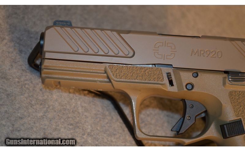 Description: The MR920 is a feature-packed, compact-sized pistol that is designed to work with existing G19 holsters, magazines, and gear. 9mm Luger SOLD Barrels: 416R Stainless Steel Triggers: 4.5-5.0 lbs Weight: 5 lbs Sights: "Front sight: Green Outline, Tritium Dot Rear sight: Black Serrated Item Location: Lexington, KY |