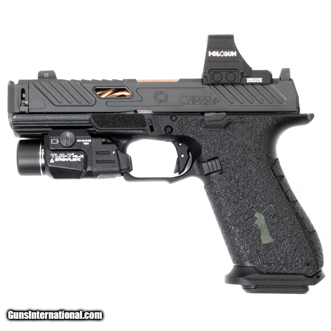 Description: Guns Listing ID: 547359 This Shadow Systems XR920P features grip tape on the frame, a Holosun HS507 Comp red dot, and a TLR-7 HL-X Streamlight with accessories (needs battery). Purchase includes a soft case, two 17-round magazines, backstraps, and the original optic plate. Get the best bang for your buck when you get a Certified Used Firearm . When you see the Certified Used stamp on any of our firearms, you can be confident that you‚re getting exactly what you want – a gun only in very good to excellent condition and held to the highest quality standard. All Certified Used Guns come with a ‚no questions asked‚ return policy . SOLD Manufacturer: SHADOW SYSTEMS Model: XR920P Caliber Info: 9MM LUGER (9X19 PARA) Condition: Used - Certified Barrels: 4.50 BARREL Action: SEMI AUTOMATIC Finish: black Weight: 1.4 |