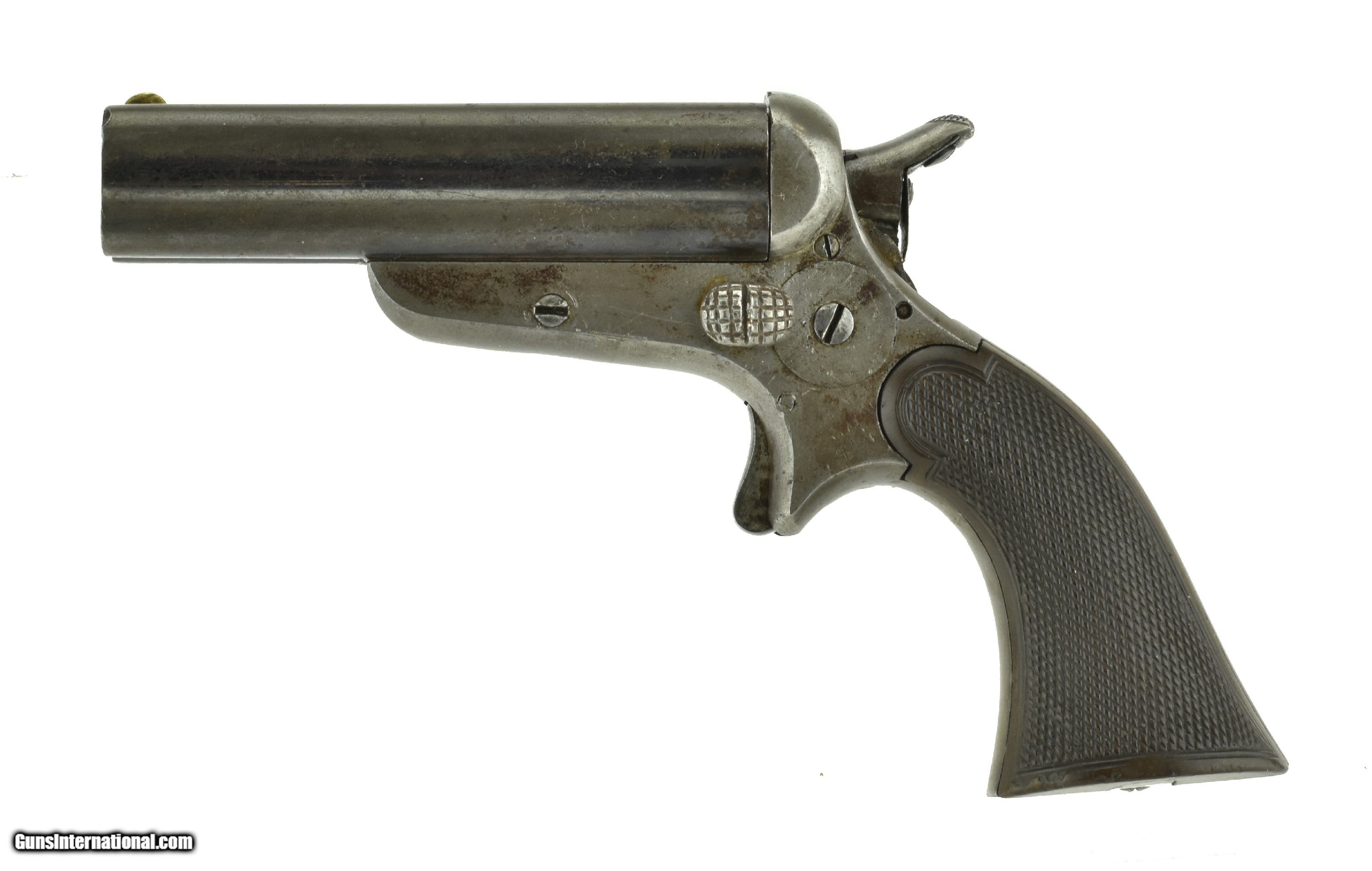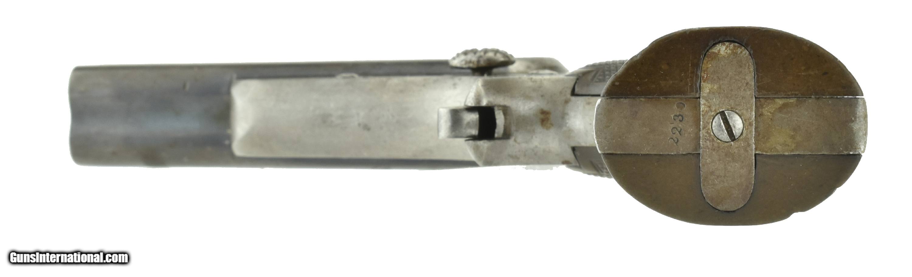 Description: "Sharps Model 3A .32 Short Rimfire. 4 Barrel Pepperbox. Bores are very good with some corrosion but mostly shiny. Grips are excellent. Barrel release button is a replacement. Gun has approximately 30% blue on the barrel. Note: This is a Sharps and Hankins Model 3A. Antique: Yes Price: $1,650.00 Contact Seller |