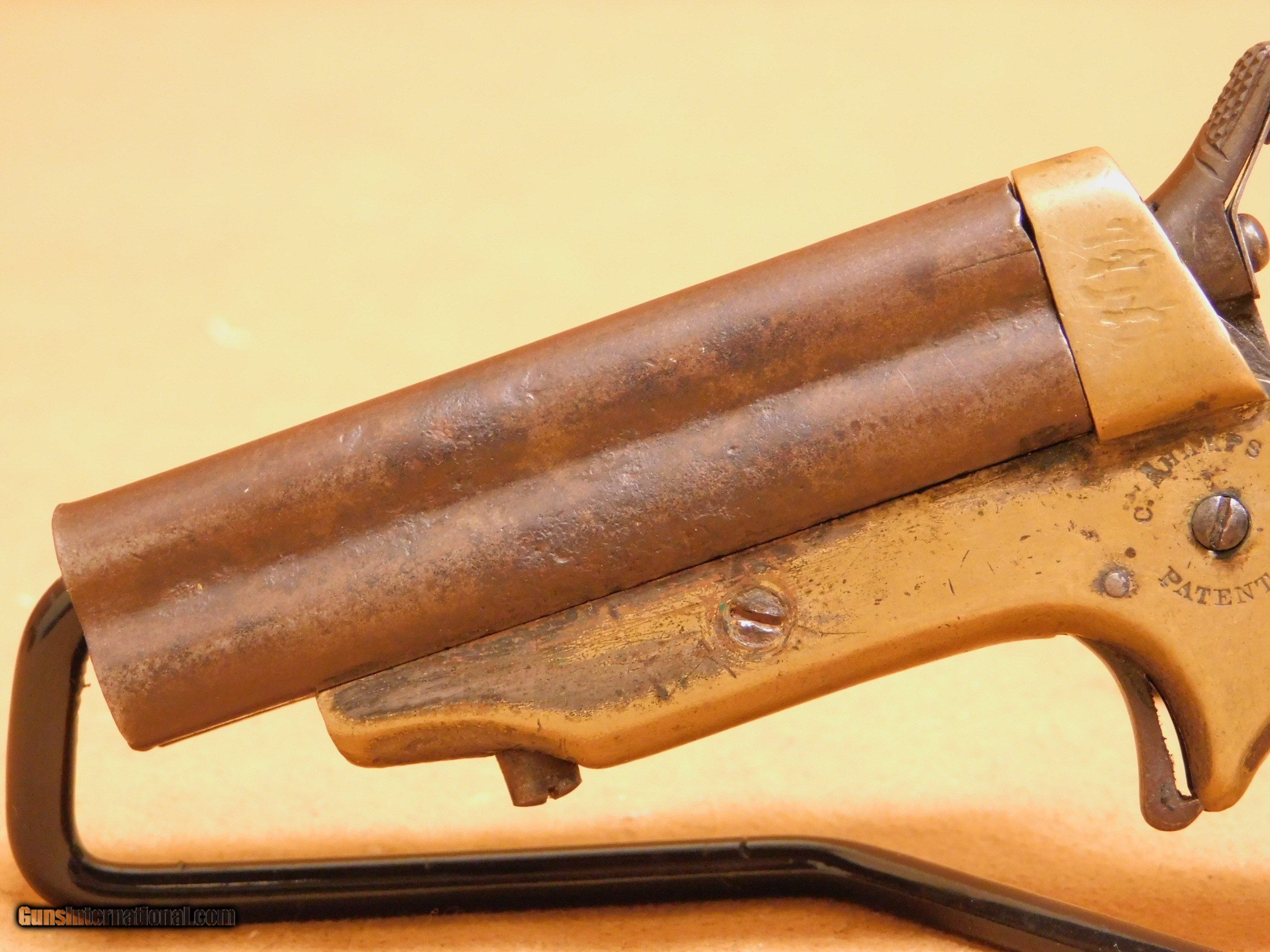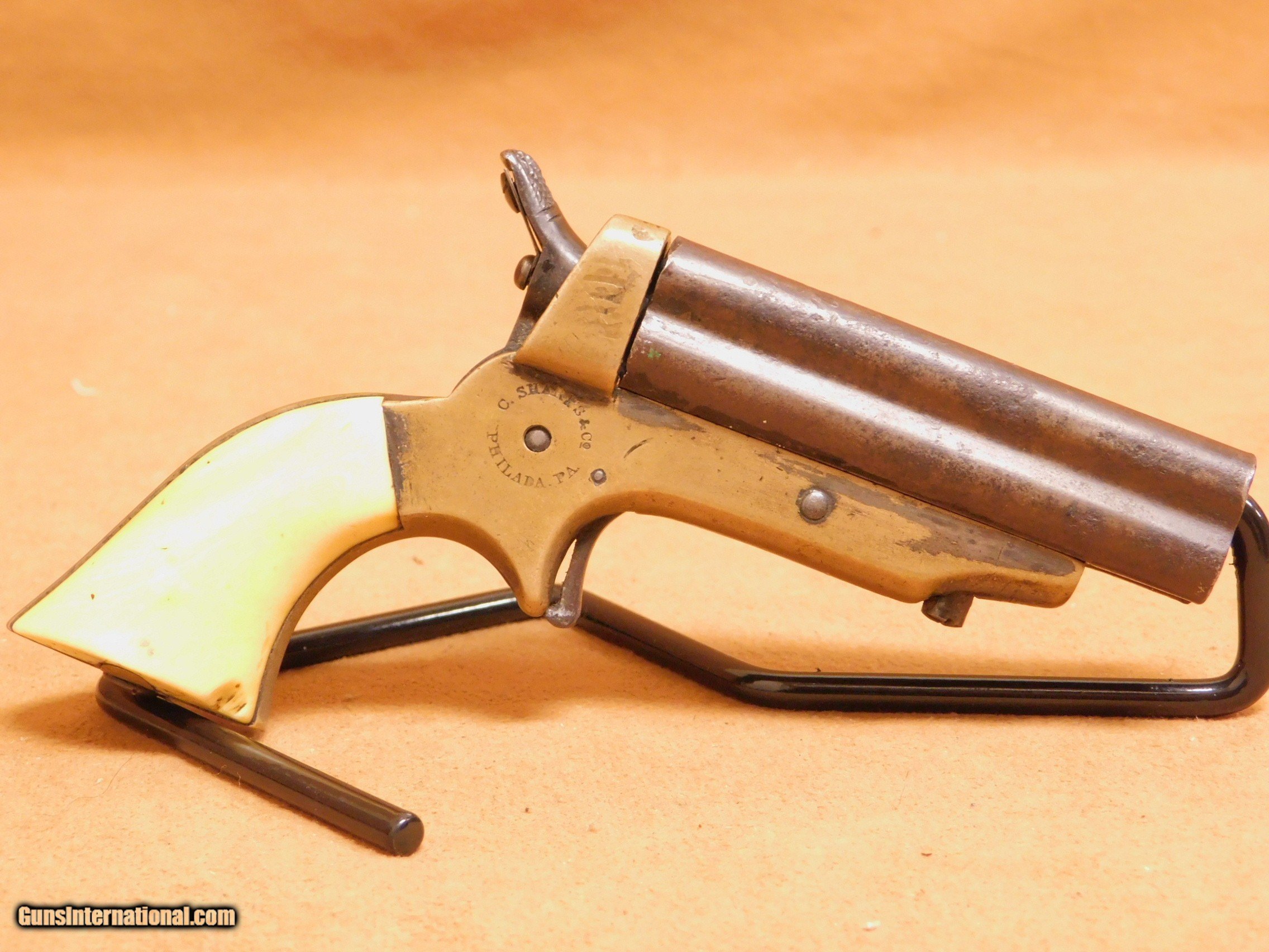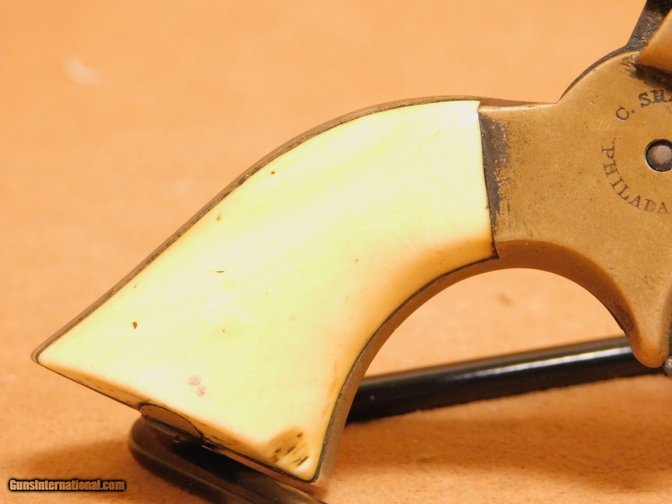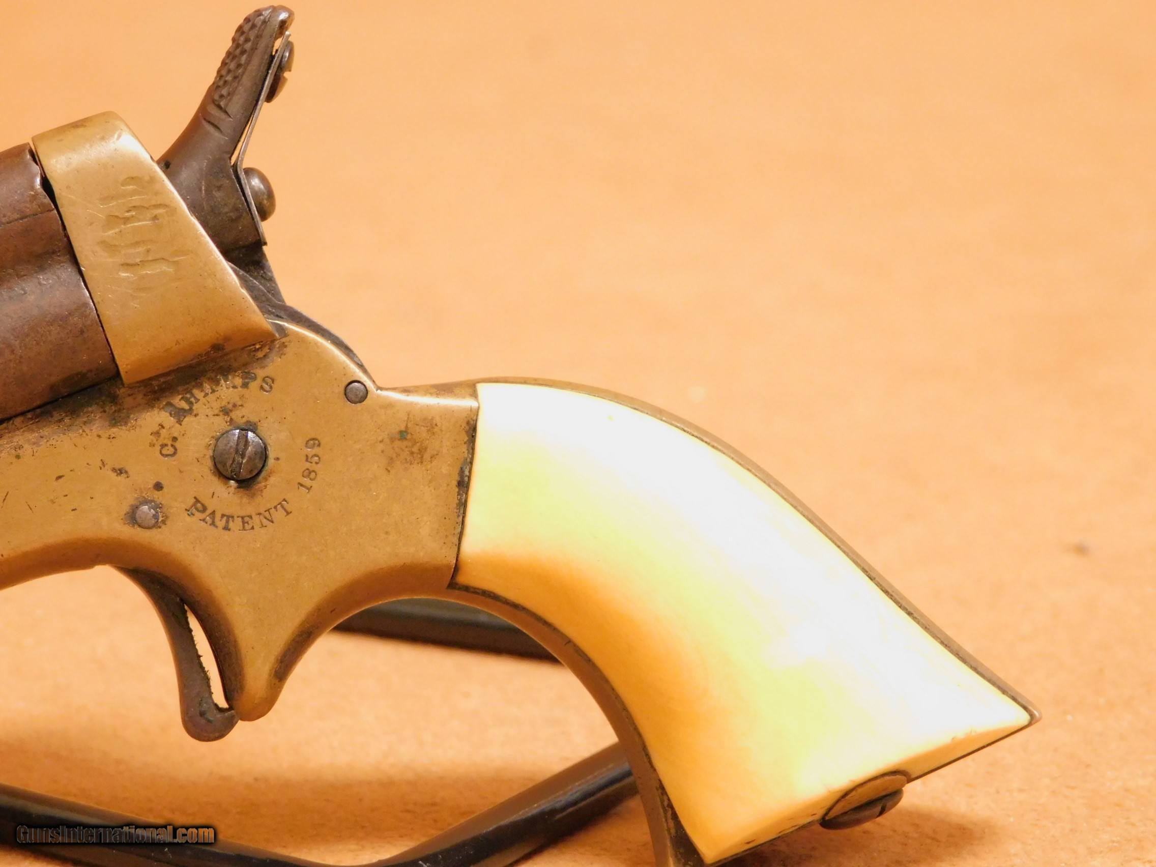 Description: Here we present an antique Sharps Model 2 Pepperbox Revolver in .30 Rimfire, made circa 1859 to 1874 in Philadelphia, Pennsylvania. Christian Sharps invented his famously namesake large bore, breech-loading rifle in 1848, after practicing gun-making under John Hall at Harpers Ferry Armory. In 1859, he premiered another unique design in the 4-barreled pepperbox pistol with a unique revolving firing pin, made for 19th Century concealed carry. This repeating design was able to utilize the new rimfire ammunition like Smith & Wesson, without infringing on Smith & Wesson’s Rollin White Patent for bored through chambers on a revolver’s cylinder. This gave Sharps a leg up in the market since everyone else either had to produce single shot pistols, come up with an alternate ammunition and weapon design, or just stick with percussion until the patent expired. They made very nice, easy to use and compact firearms for 19th Century conceal and carry! The overall condition is very good. The metal surfaces have a dark mustard patina with traces of the original silver plate in protected areas on the brass frame. The markings are clear. The numbers match. The ivory grips are in good shape and have excellent patina. The bores are in good shape with nice rifling but dark. The action is excellent, strong and crisp, with full functioning rotating firing pin. All items are also available for sale in our brick & mortar store and are subject to prior sale. Think long, think wrong. Payment On firearms, we typically only accept credit cards or money orders/cashier's checks.