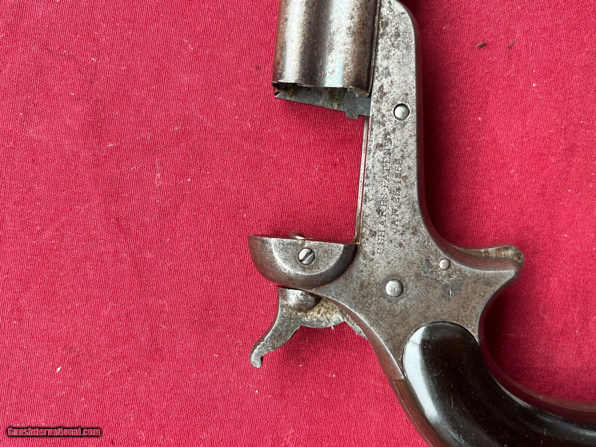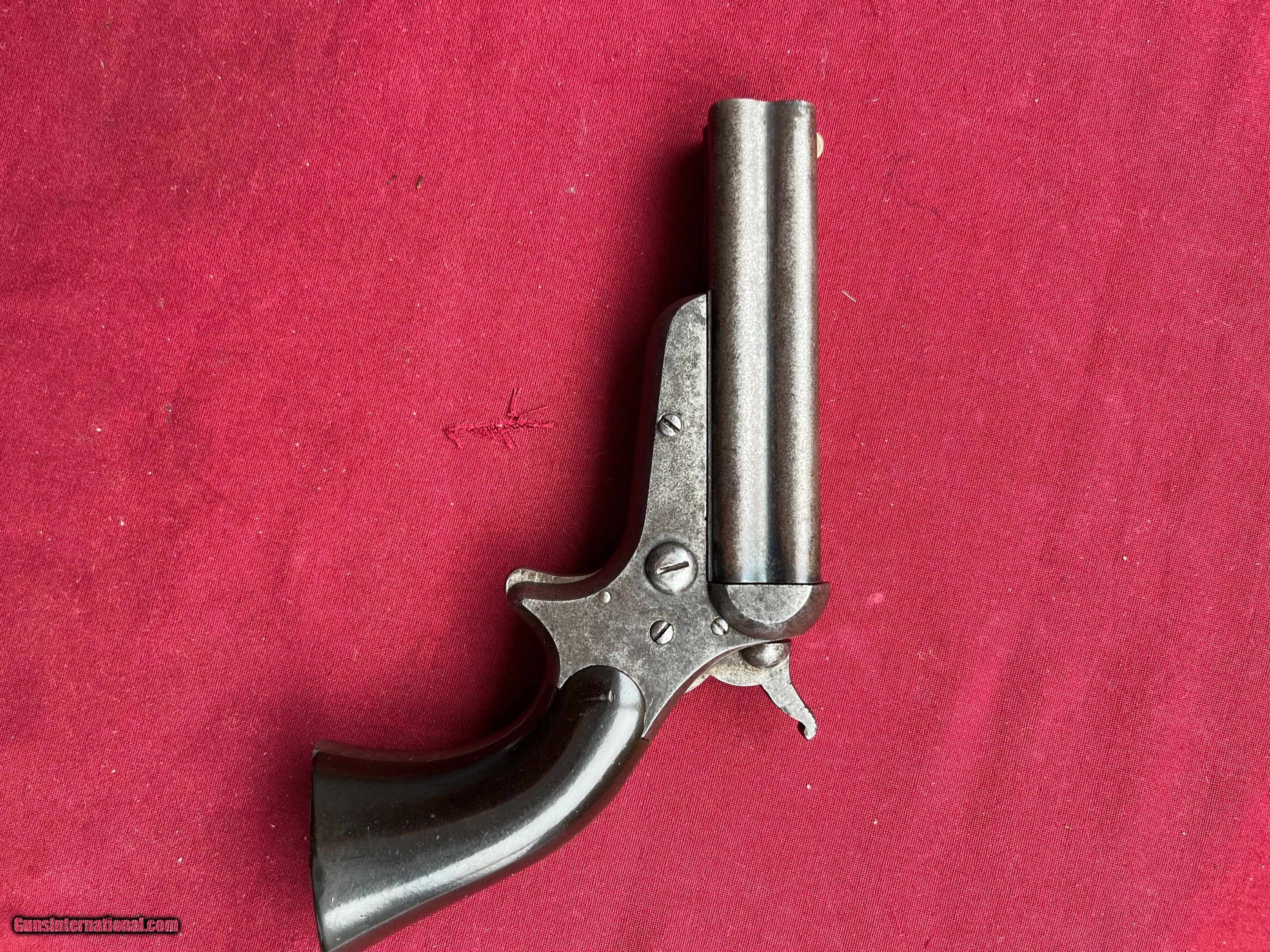 Description: ANTIQUE C. SHARPS FOUR BARREL DERRINGER , PATENT DATE JAN. 25TH 1859, BARRELS LOCK UP TIGHT TO THE FRAME. METAL SHOWS A GRAY /BROWN THIN PATINA FINISH . VERY GOOD SOLID GRIPS. ACTION NEEDS ATTENTION . HAMMER AND TRIGGER WORK BUT HAMMER SPRING ALLOWS IT TO COME BACK TOO FAR. FIRING PIN DOES NOT ROTATE. MEASURES 32 CALIBER AT THE MUZZLE. SELLING AS IS AS A PROJECT FOR REPAIR. EASTERN BRANCH FIREARMS ADD 35.00 SHIPPING – HANDGUN USPS PRIORTY MAIL ADD 35.00 SHIPPING – LONG GUNS GROUND SHIPPING Questions e-mail or call Glen at Eastern Branch Firearms 207-215-5021 TERMS – PLEASE READ BEFORE I DO NOT HAVE A LAYAWAY OPTION ( WE ACCEPT CREDIT CARDS ) -- I GET ALOT OF REQUEST FOR TRADES, I WOULD PERFER NOT TO DO TRADES ON MY INTERNET LISTINGS PAYMENT OPTIONS- We accept money orders, cashier’s checks , bank checks. sorry no personal checks. We accept all major credit cards please add 3% to the ’s cash discount price.(Maine Residents to pay 5% sales tax) .Handguns and long guns do need to be shipped separate. PLEASE do not send payment via FED EX . USPS & UPS are fine. Thank you. We include a signed copy of our FFL with each firearm shipped. SAFTY NOTICE- Buyer is solely responsible for determining that a used gun is safe to shoot. The firearms offered have not been test fired but have been given a visual inspection only for purposes. It is a requirement that every used firearm is inspected by a qualified gunsmith before firing. By , the buyer agrees to hold seller harmless against damages, injury, or death caused by defective merchandise. U.S. sales only, no exports…this includes antiques. I will ship to third party for exporting SOLD Antique: Yes |
