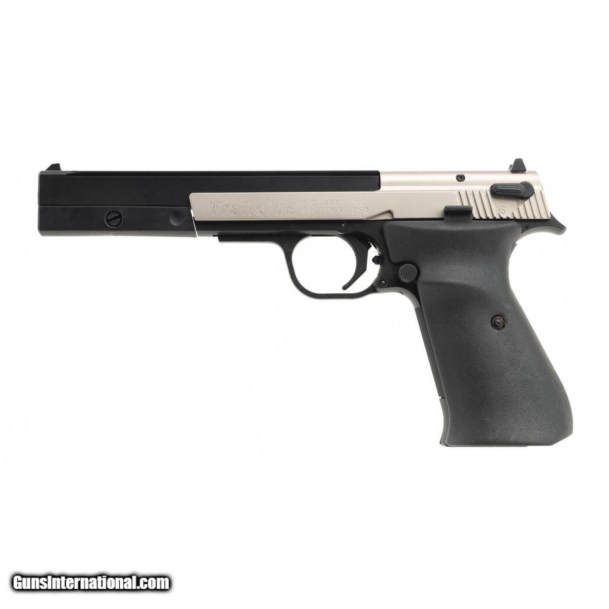 Description: " SIG Trailside .22 LR caliber pistol. Swiss made Sporter with 2 tone finish. Excellent condition with box. SOLD |