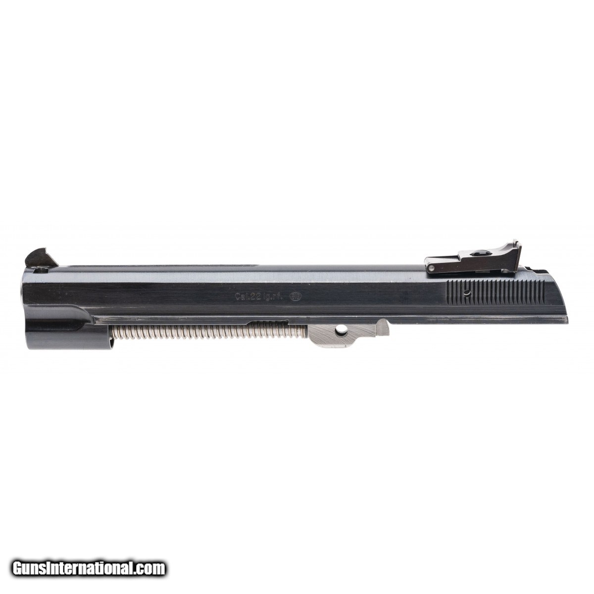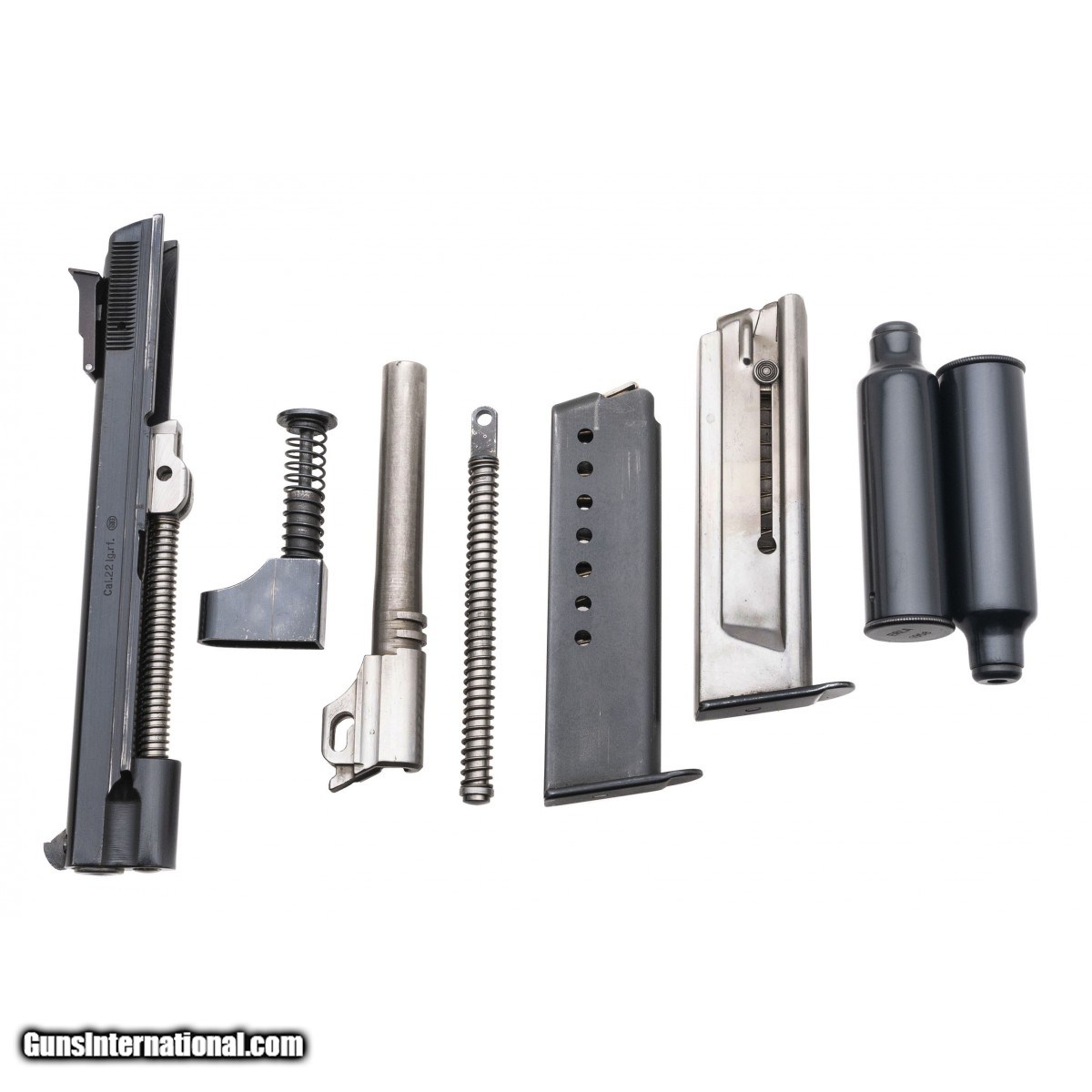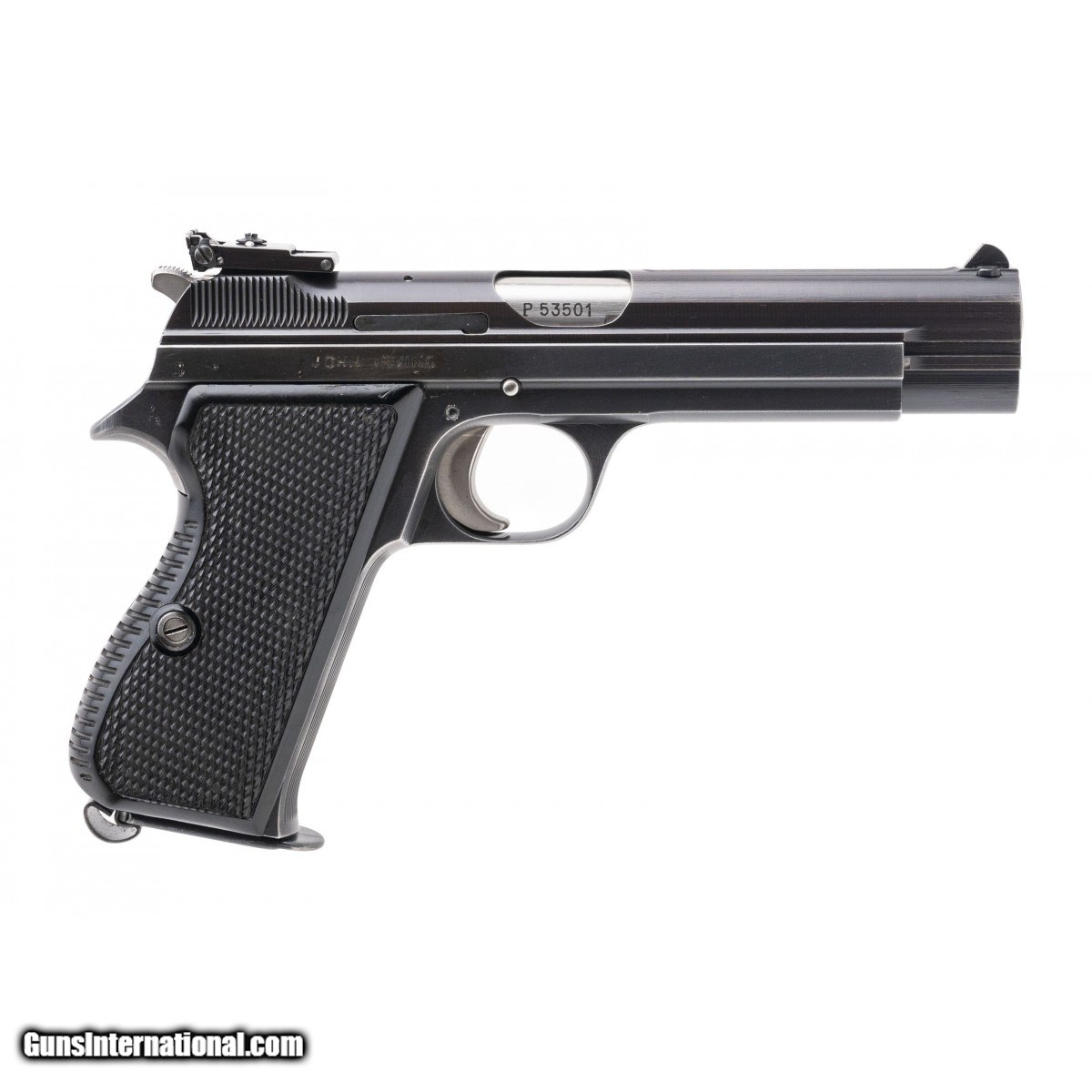 Description: "SN: P53501. 1950’s vintage 9mm/7.65 Luger/.22 with a 4.7" barrel. Original Swiss made 3-caliber set. Comes with 9mm and 7.65 barrels numbered to the gun, plus a .22 conversion unit. Has about 95% blue with some edge wear, overall very good condition. Comes in a wooden case with mags and accessories. (CONSIGNMENT) SOLD Curio/Relic: Yes |