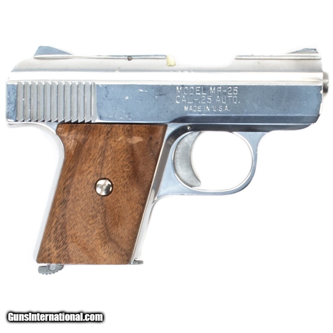 Description: Guns Listing ID: 549696 Introduced in 1970, the Raven Arms MP-25 is a .25 caliber pocket pistol born as a result of the Gun Control Act of 1968. This Act prohibited the import of inexpensive handguns, leaving a gaping need in the market. Perfect for concealment, the MP-25 is compact, lightweight, and reliable. It was made with a sleek, simple design and was easy to handle. Raven Arms ceased operations in 1991, making this pocket pistol a cheap collectible. One 6-round magazine is included. SOLD Manufacturer: RAVEN ARMS Model: MP-25 Caliber Info: .25 ACP Condition: Used - Non-Certified Barrels: 2.5 BARREL Action: SINGLE ACTION Finish: stainless Weight: 1.7 LBS |