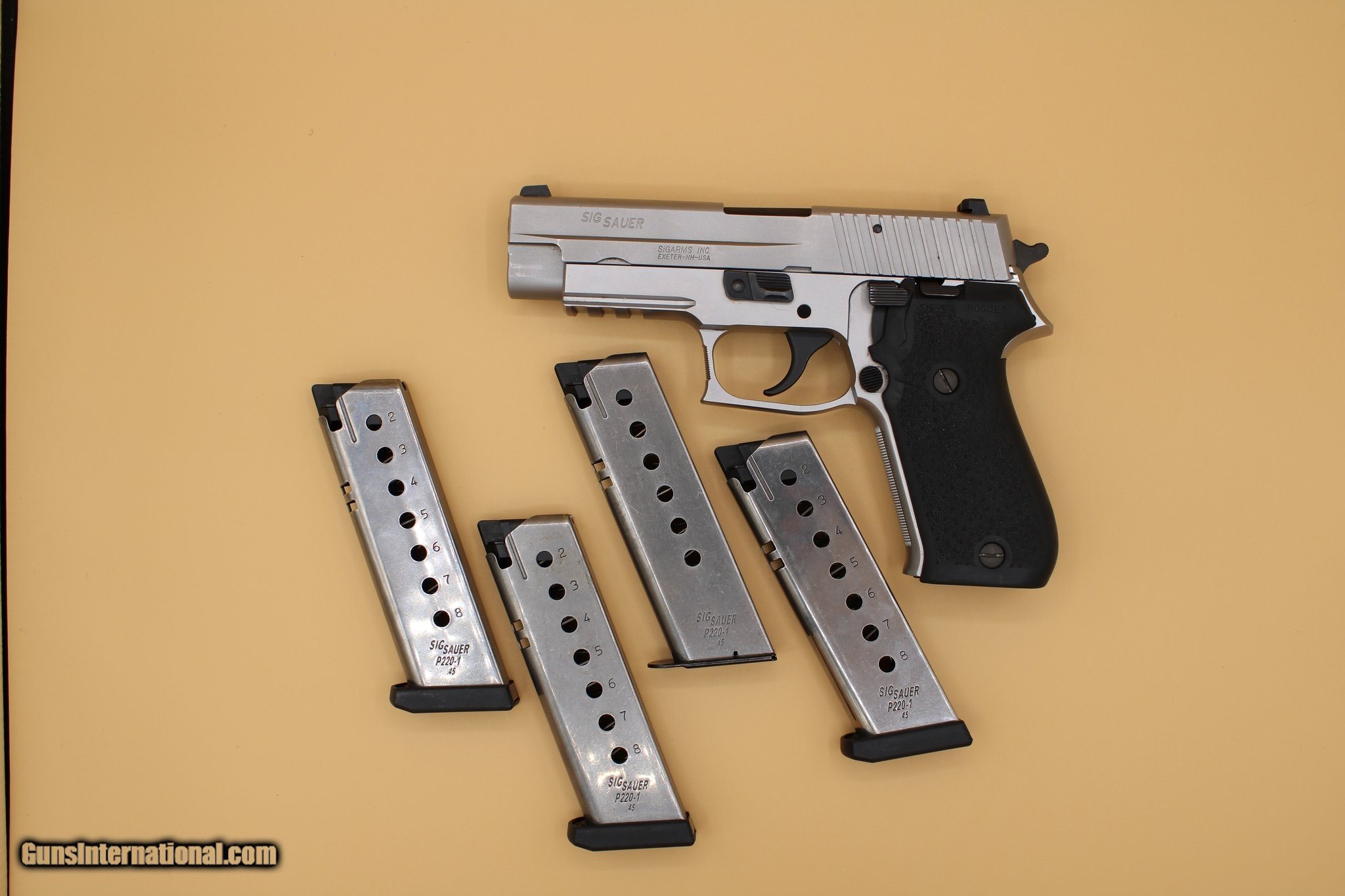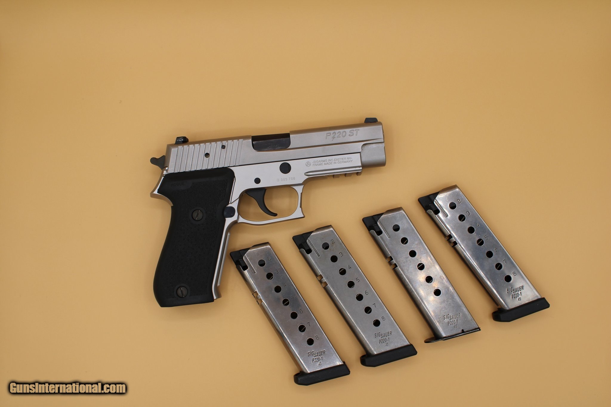 Description: Guns Listing ID: 1324158 SIG ARMS AG P220 ST - .45 ACP - 8 ROUNDS - 4.4 \" Very good condition. Comes with 4 mags. No box. SOLD Manufacturer: SIG ARMS AG Model: P220 ST Caliber Info: .45 ACP Condition: Used - Non-Certified Barrels: 4.4 BARREL Finish: SILVER AND BLACK |