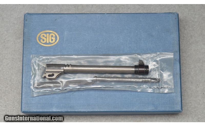 Description: Sig Arms P210-5 target pistol in excellent condition. This Sig includes the 5 3/4" & 7" barrels, target sights, and lanyard loop. This pistol is in excellent condition with only minor signs of use with wear lines from takedown and safety. Includes the extra barrel & magazine in the box. Box interior foam has deteriorated. SN: P71902 9mm Luger SOLD Metal Condition: Excellent Wood Condition: Excellent Bore Condition: "Clean, Good Rifling Barrels: 5 3/4 Butt Pad: Black Plastic Panels Weight: 2 lb 5 oz Sights: "Adjustable Rear, Barrel Sight Item Location: Fort Worth, TX |