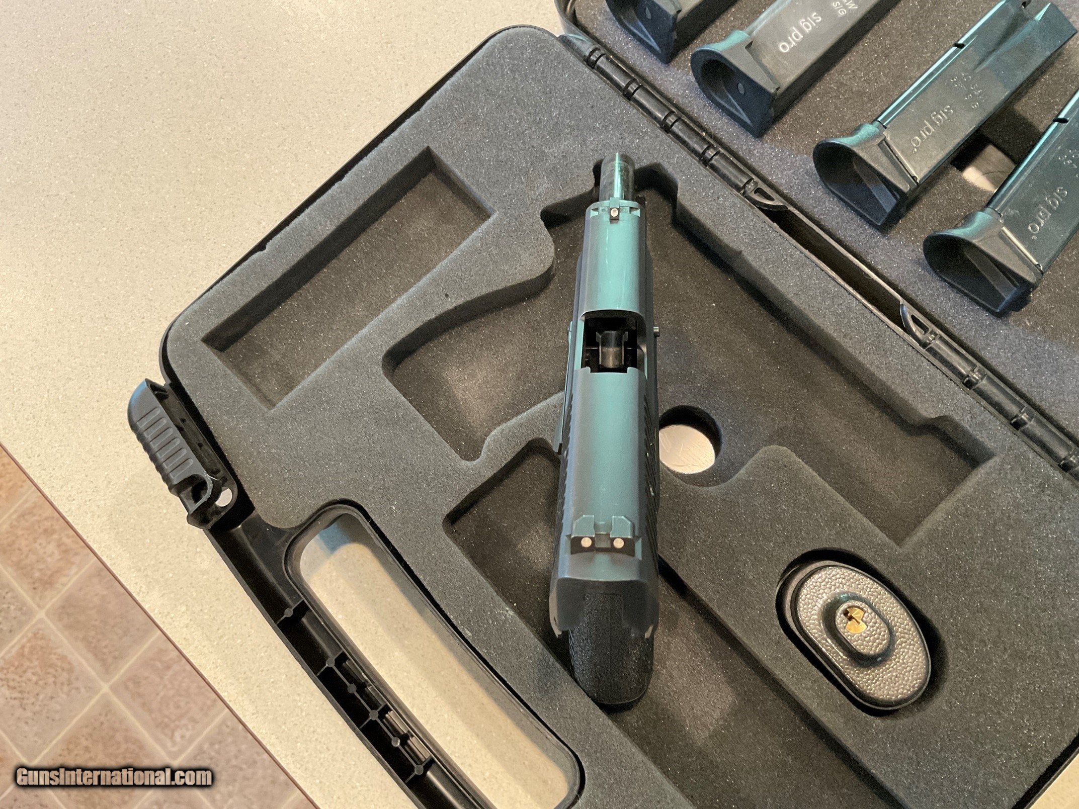 Sig Arms SP2340 pistol with Swiss-made Frame, Night Sights, two NEW barrels .357Sig .40S&W and 4 magazines plus NEW spare parts
