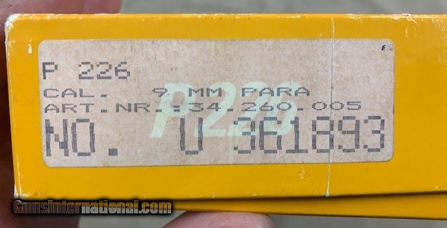 Description: An absolutely mint condition Sig P226 9mm Pistol, in the original box, with all the original paperwork including test target, etc. Cannot be improved upon. SOLD Handgun Caliber: 9x19mm Parabellum (9mm Luger, 9x19mm NATO) |