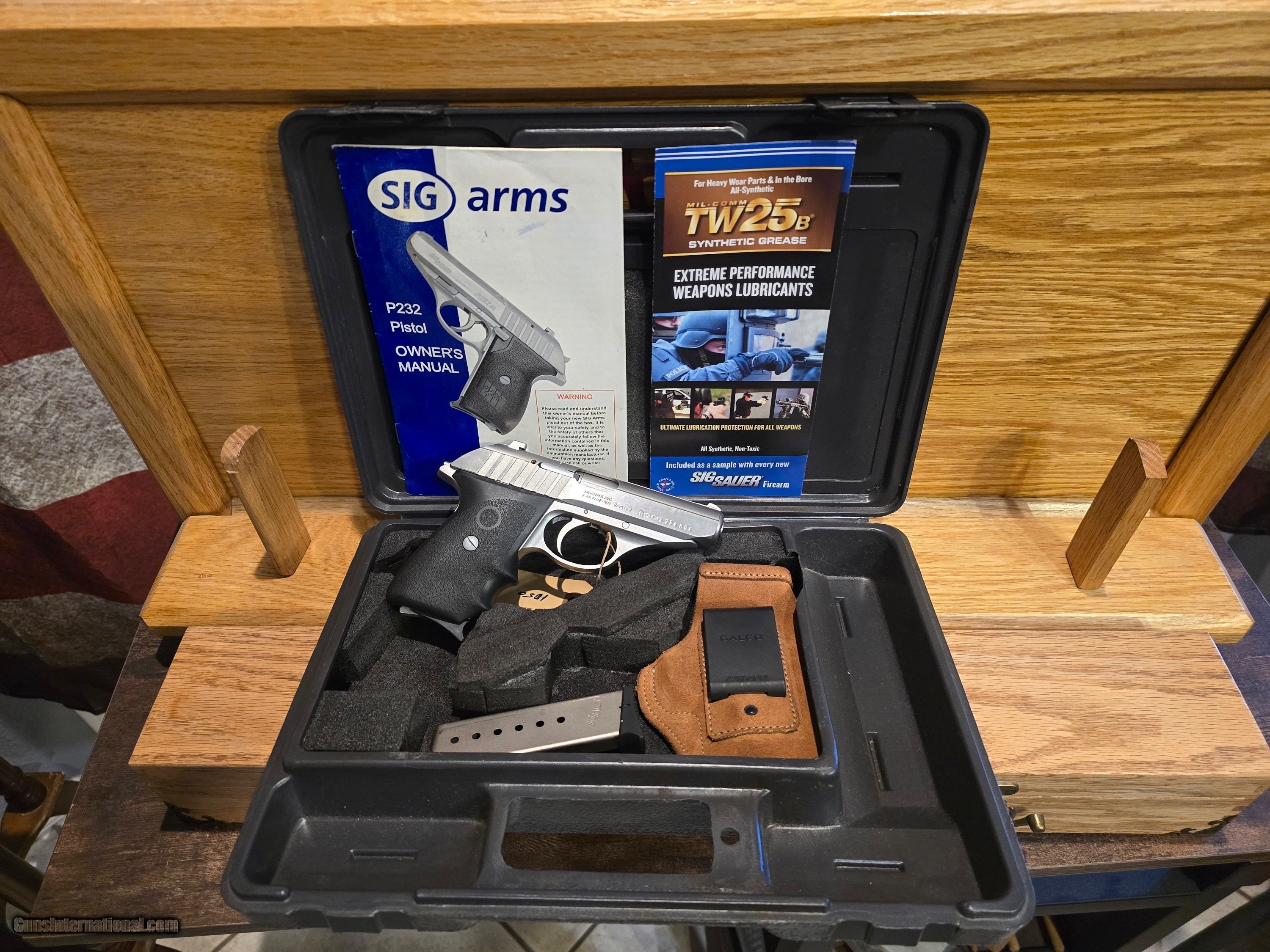 Description: HERE IS A LIKE NEW SIG SAUER P232SL IN HARD CASE WITH 2 MAGS AND HOLSTER MADE IN GERMANY. The SIG Sauer P232 SL is a classic, out-of-production, all-stainless-steel compact semi-automatic pistol chambered in .380 ACP, highly regarded for its accuracy and build quality. It is available only on the used market now. Key Features and Specifications