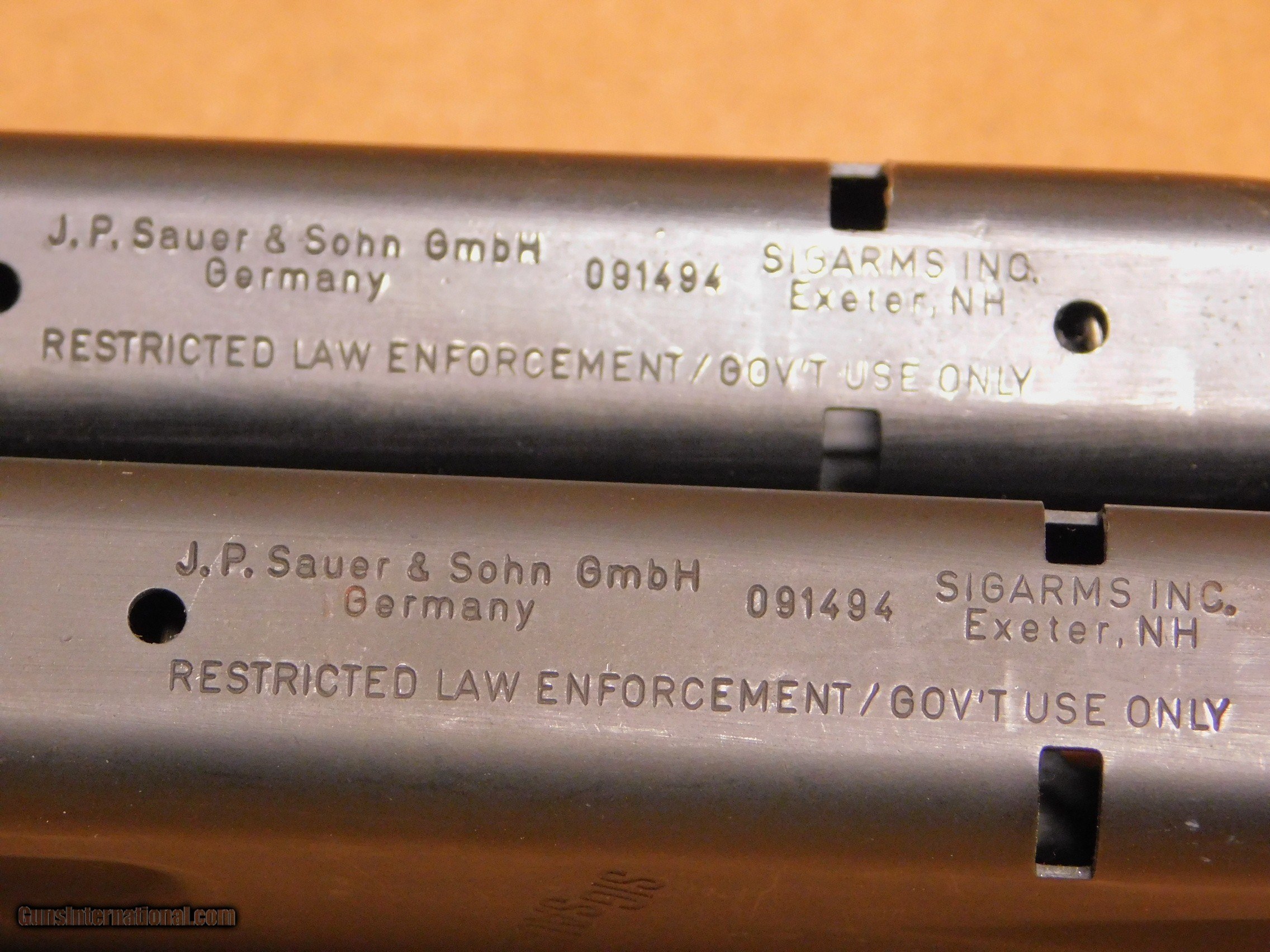 Description: This is a nice SIG Sauer / SIGARMS P228 in 9mm. It was made in West Germany and imported into the US through SIGARMS at Exeter, NH. The action on this pistol is very nice and smooth. It features two magazines that are marked "J.P. Sauer & Sohn GmbH, Germany" and "RESTRICTED LAW ENFORCEMENT/GOV'T USE ONLY". It has TRU DOT night sights, but the glow has faded and now they function as 3-dot sights. This gun comes with its factory box, test target, and manual in addition to the two magazines. All items are also available for sale in our brick & mortar store and are subject to prior sale. Think long, think wrong. Payment On firearms, we typically only accept credit cards or money orders/cashier's checks.