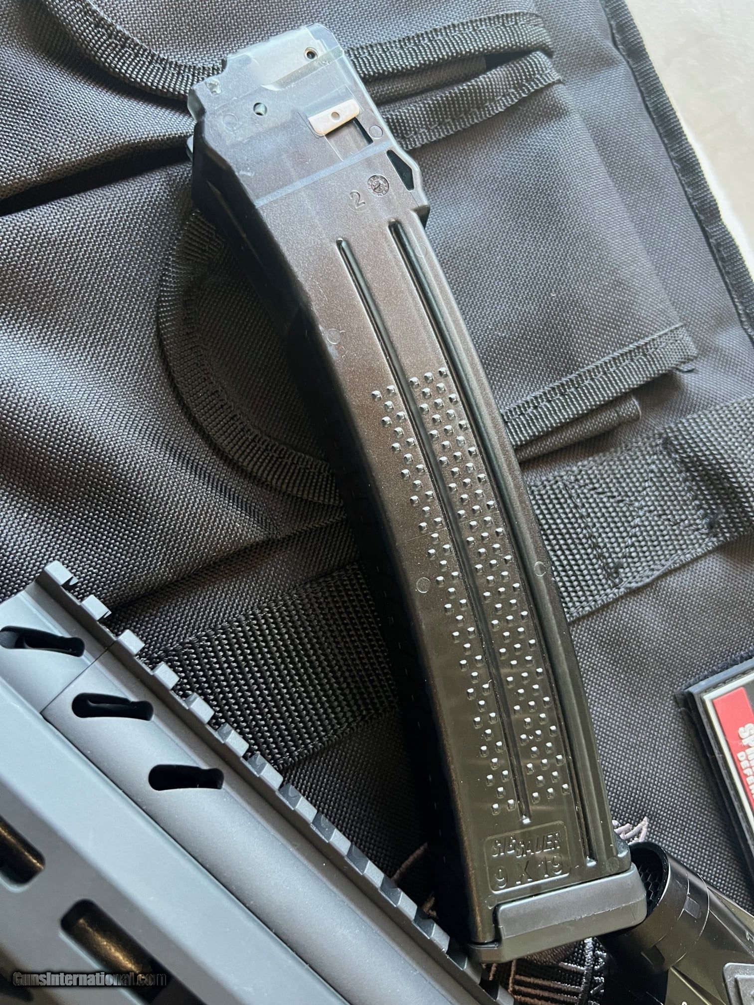 Description: Guns Listing ID: 916813 The choice of professionals worldwide, the MPX K offers a closed bolt gas piston system that is ultra reliable and durable. As with all MPX, the K is modular allowing for multiple handguard and barrel lengths and is ready to go for suppressor use. The K also features an updated M-Lok handguard which is available as accessories in multiple lengths for suppressor coverage. Finally, the K is upgraded with the ultra smooth, ultra-fast Timney Trigger. Co-designed by Timney and SIG, this trigger offers the Timney performance you have come to expect we with the ultimate reliability to make it survive the punishment of a sub gun platform. If you are looking for the ultimate modular sub gun, look no further than the MPX K from SIG SAUER. Specification Mag Type MPX Barrel Length 4.5 in (114 mm) Caliber 9mm Luger Height 8 in [203 mm] Overall Length 22.25 in [565 mm] Overall Width 2.4 in [61 mm] Twist Rate 1:10 Weight 5 lb (2.3 kg) Operating System Gas Piston SOLD Manufacturer: SIG SAUER Model: MPX K Caliber Info: 9MM LUGER (9X19 PARA) Condition: Used - Non-Certified Barrels: 4.5 BARREL Finish: BLACK |