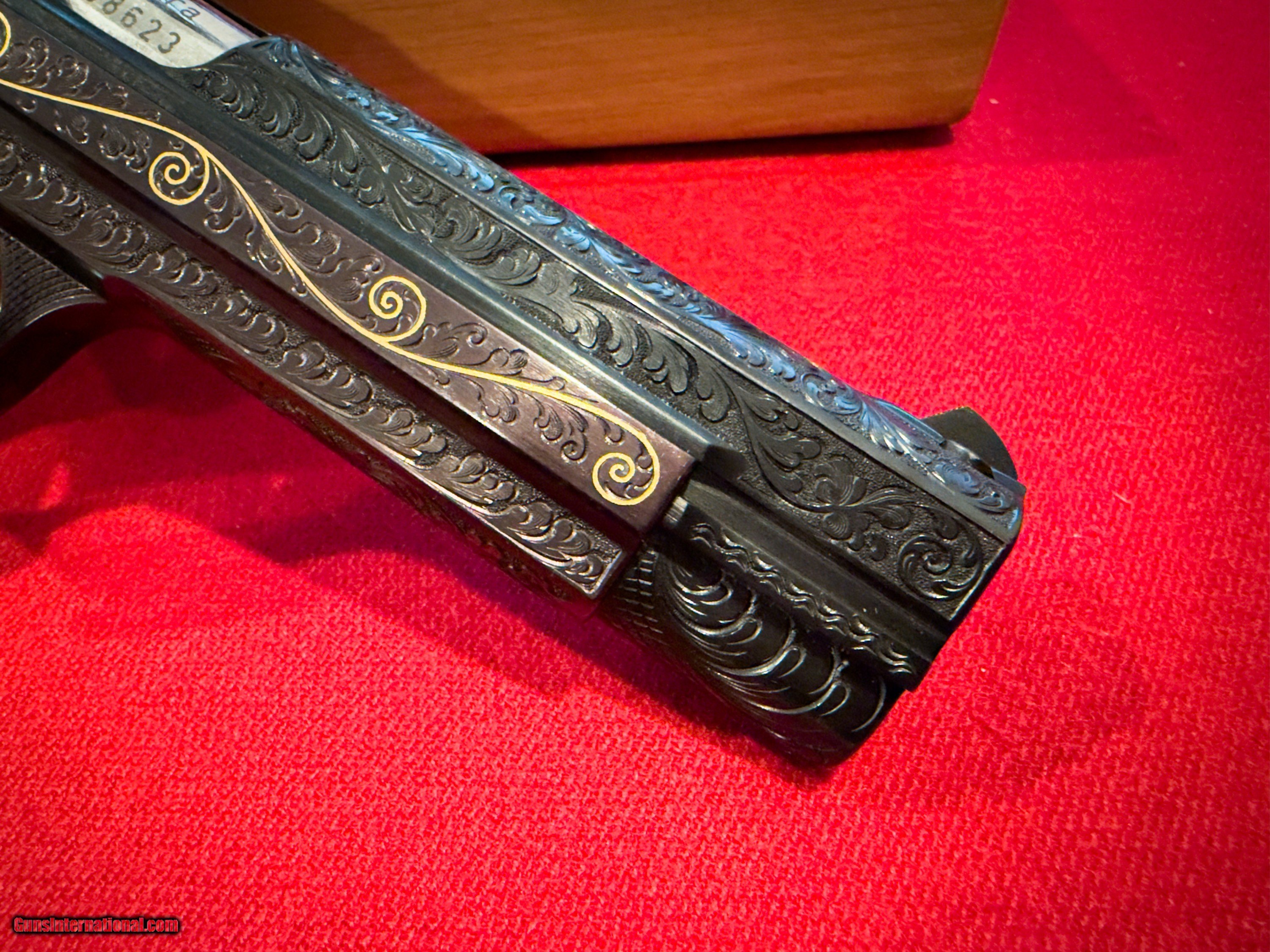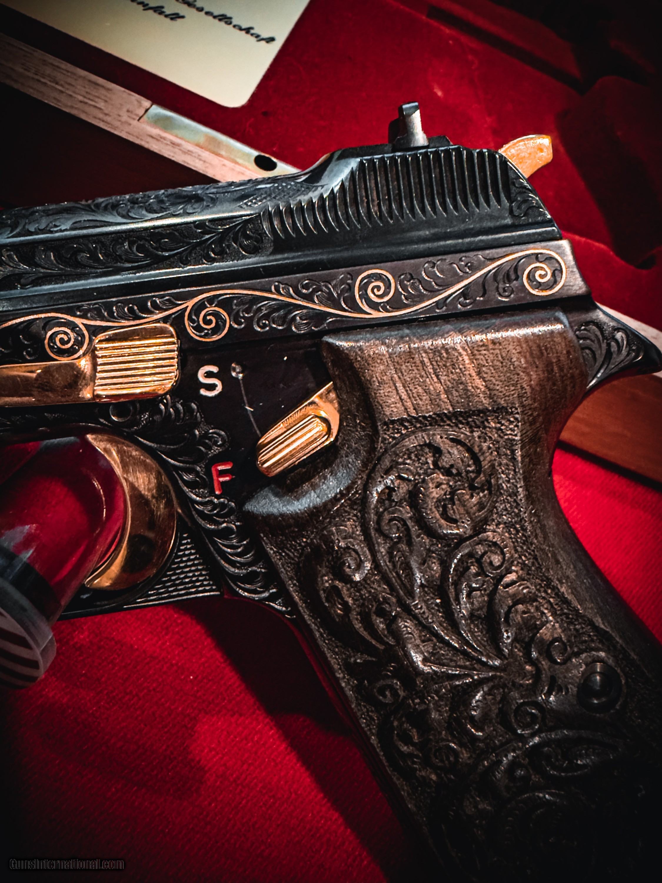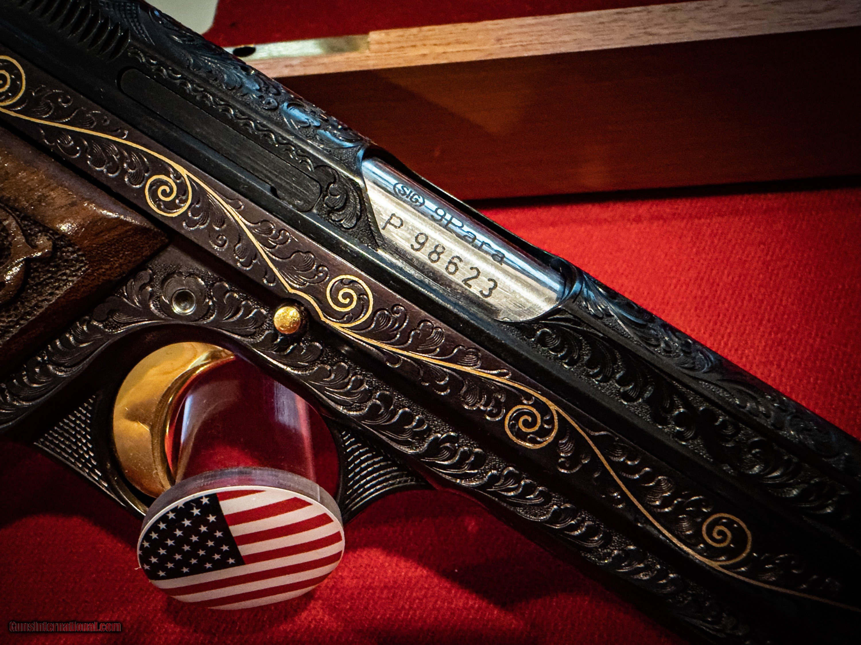 Rare & Beautiful Sig Sauer P210 Luxury Engraved With Exquisite Gold Inlay W/ Glass Top Wood Presentation Case