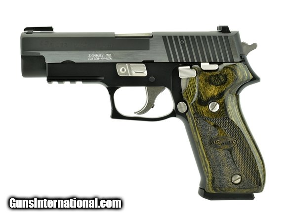 Description: Sig Sauer P220 Equinox .45 ACP Caliber pistol. Full size model with 2-tone finish and fancy wood grips. Excellent condition with box and extra magazine.