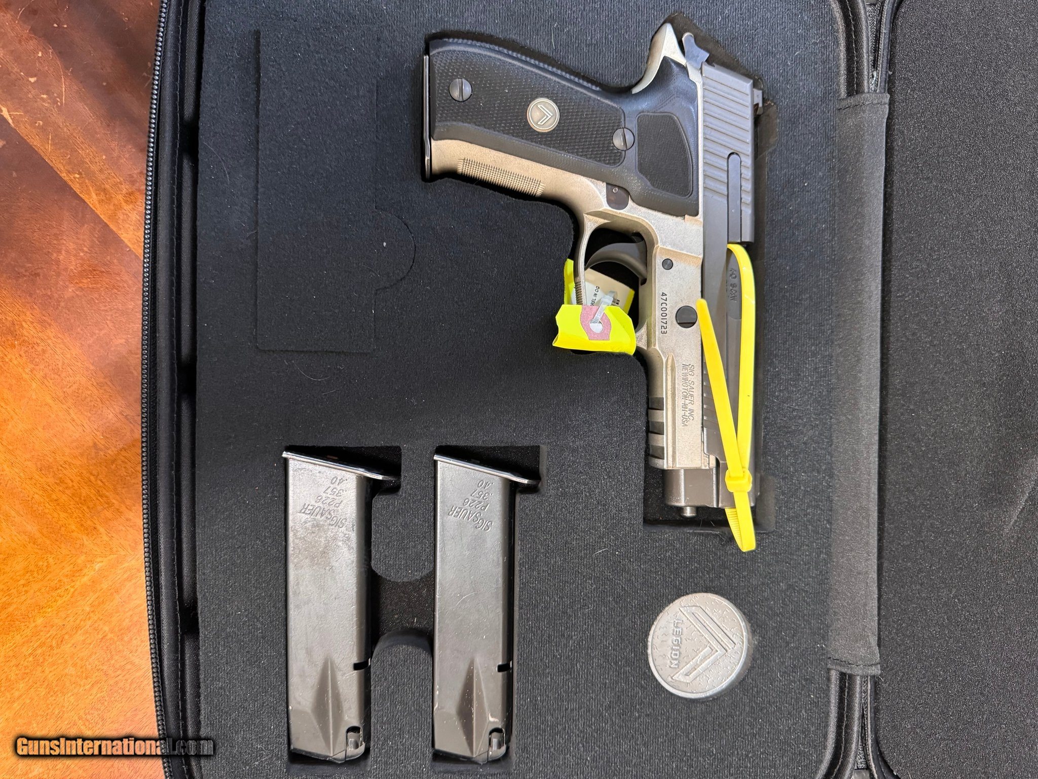 Description: Guns Listing ID: 1296216 USED, WITH THREE(3) 12RNDS MAGAZIN IN GRY CASE SOLD Manufacturer: SIG SAUER Model: P226 Caliber Info: .40 CALIBER Condition: Used - Non-Certified Barrels: 4.4 BARREL Finish: BLACK & GREY |