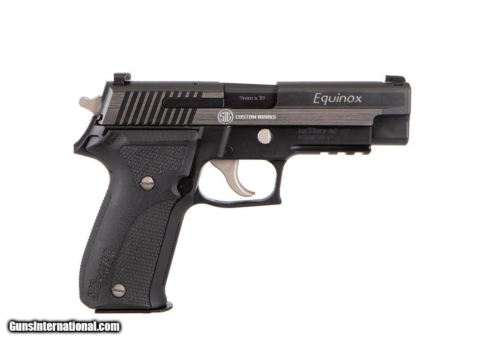 Description: Guns Listing ID: 1314347 UNFIRED LIKE NEW Sig Sauer Equinox P226 Custom Works Limited Edition 1 of 500. 2-Tone, DA/SA, Xray3 Sights, Black G10 Grips, (2) 15 Round Mags SOLD Manufacturer: SIG SAUER Model: P226 EQUINOX FULL-SIZE Caliber Info: 9MM LUGER (9X19 PARA) Condition: Used - Non-Certified Barrels: 4.4 BARREL |