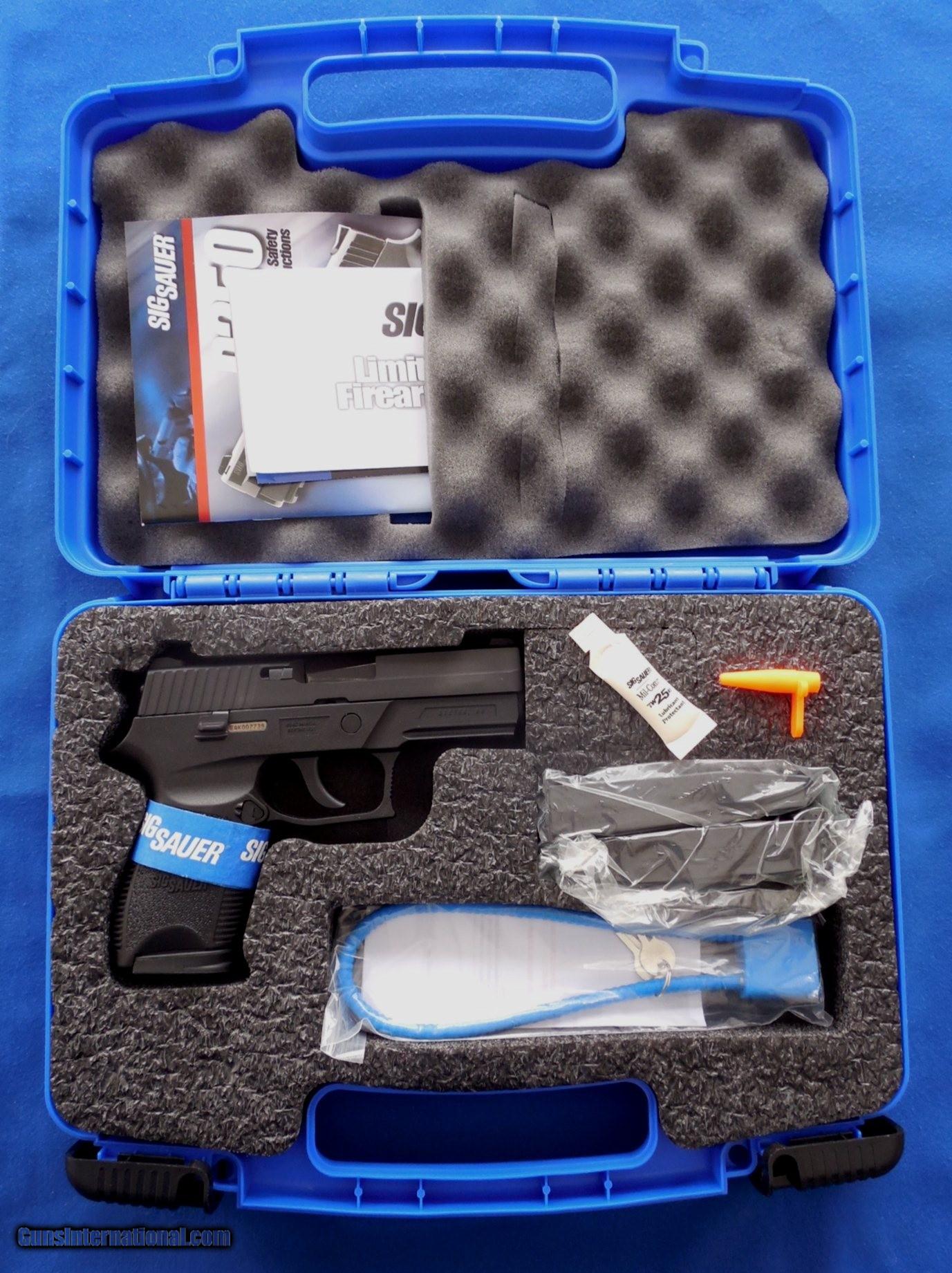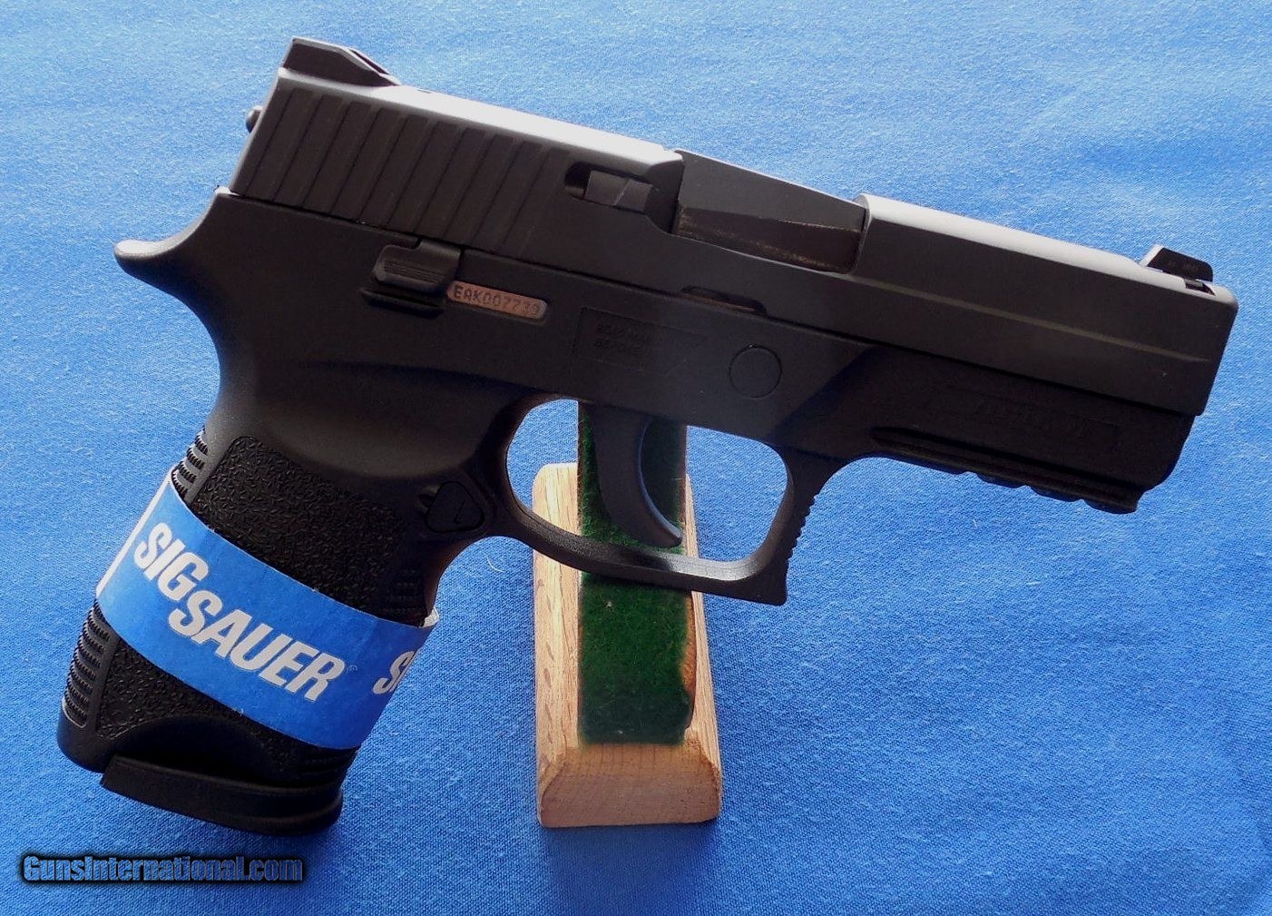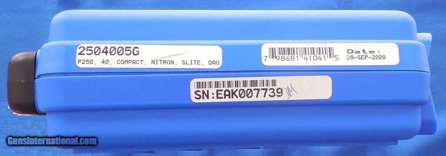 Description: SOLD Pending Funds / Sig Sauer P250 Compact Semi-Auto Pistol, serial # EAK 007739, cal. 40 S&W, with a 4" barrel and a bright excellent bore. The slide retains 99% original Nitron finish and the polymer frame with accessory rail remains excellent. Pistol is equipped with an ambidextrous slide stop and the Siglite night sights glow green. This DAO pistol includes the original factory box, (3) factory magazines, cable lock and paperwork. This arm is as-new-in-box, dealer stock, factory fired-only, and may have a very small rack or handling mark only. Inv. : # 5-332 SOLD |