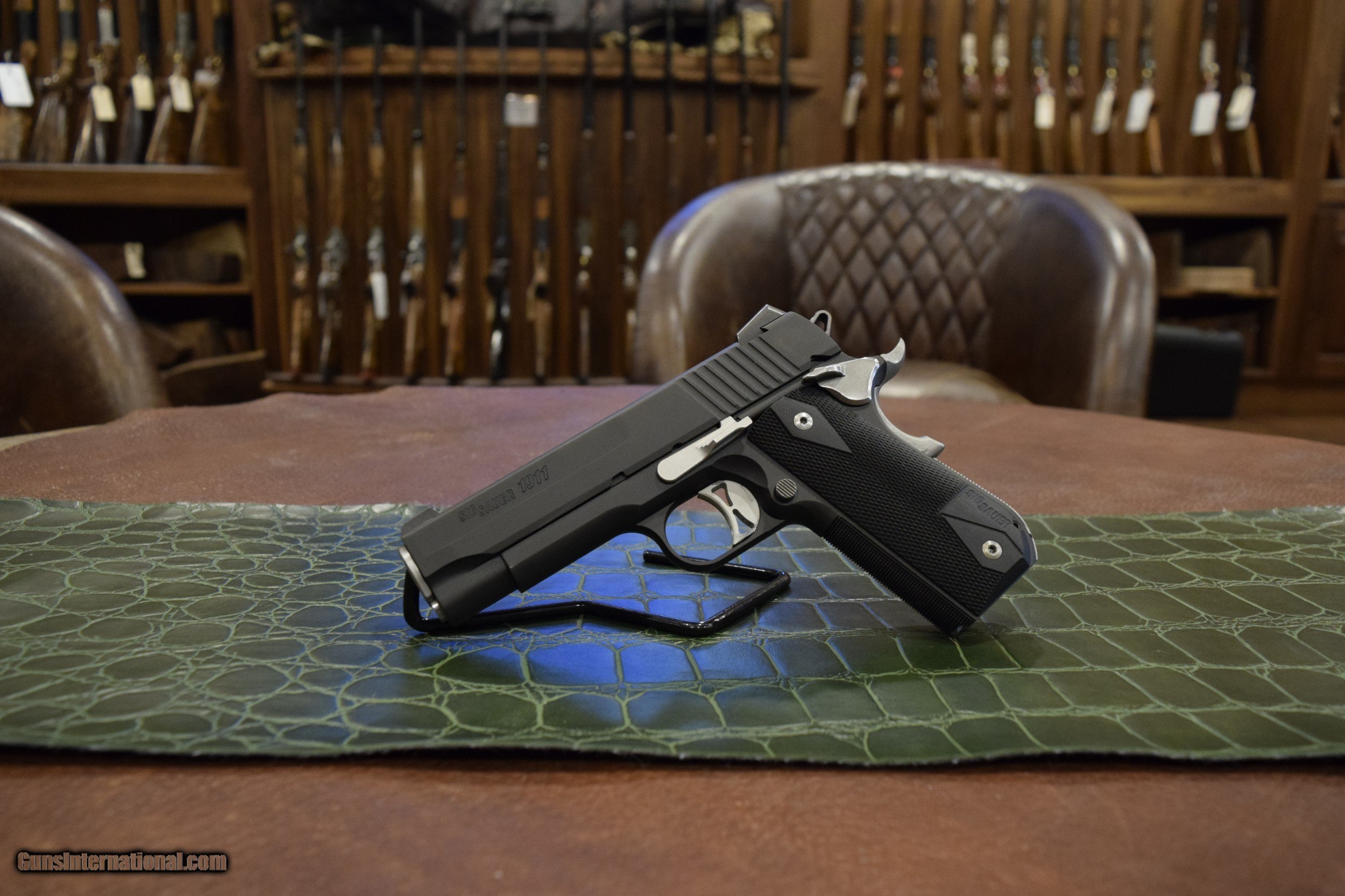Description: The legendary 1911 design has been brought into the 21st century with the refinements today's shooters demand. The 1911 Fastback Carry Nightmare pistol features a stainless steel frame with rounded grip and mainspring housing. Each pistol is built using premium internal parts including a match grade barrel, hammer/sear set and trigger. The all Nitron coated frame and slide is contrasted with natural stainless controls, barrel bushing, extractor and grips screws. The Nightmare is finished with a set of black G10 double diamond grips that makes this 1911 SIG SAUER looks as good as it performs. Pre-Owned - Sig Sauer 1911 Nightmare Single 45 ACP 4.2" Handgun
