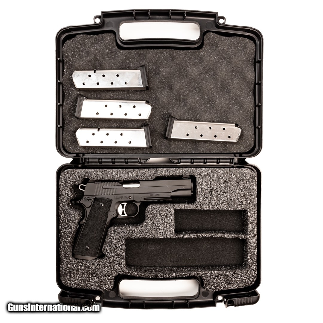 Description: Guns Listing ID: 856916 For sale is a Sig Sauer 1911. This handgun would be perfect for a wide variety of tasks as it is both powerful and reliable. If you‚‚re looking for a trustworthy pistol, it doesn‚‚t get much better than a 1911 made by Sig. Purchase includes the original case, manual, and four 8-round magazines. Get the best bang for your buck when you get a Certified Used Firearm . When you see the Certified Used stamp on any of our firearms, you can be confident that you’re getting exactly what you want – a gun only in very good to excellent condition and held to the highest quality standard. All Certified Used Guns come with a ‘no questions asked’ return policy . PLUS, ALL CERTIFIED USED GUNS SHIP FRE SOLD Manufacturer: SIG SAUER Model: 1911 Caliber Info: .45 ACP Condition: Used - Non-Certified Barrels: 5 BARREL Finish: BLACK |