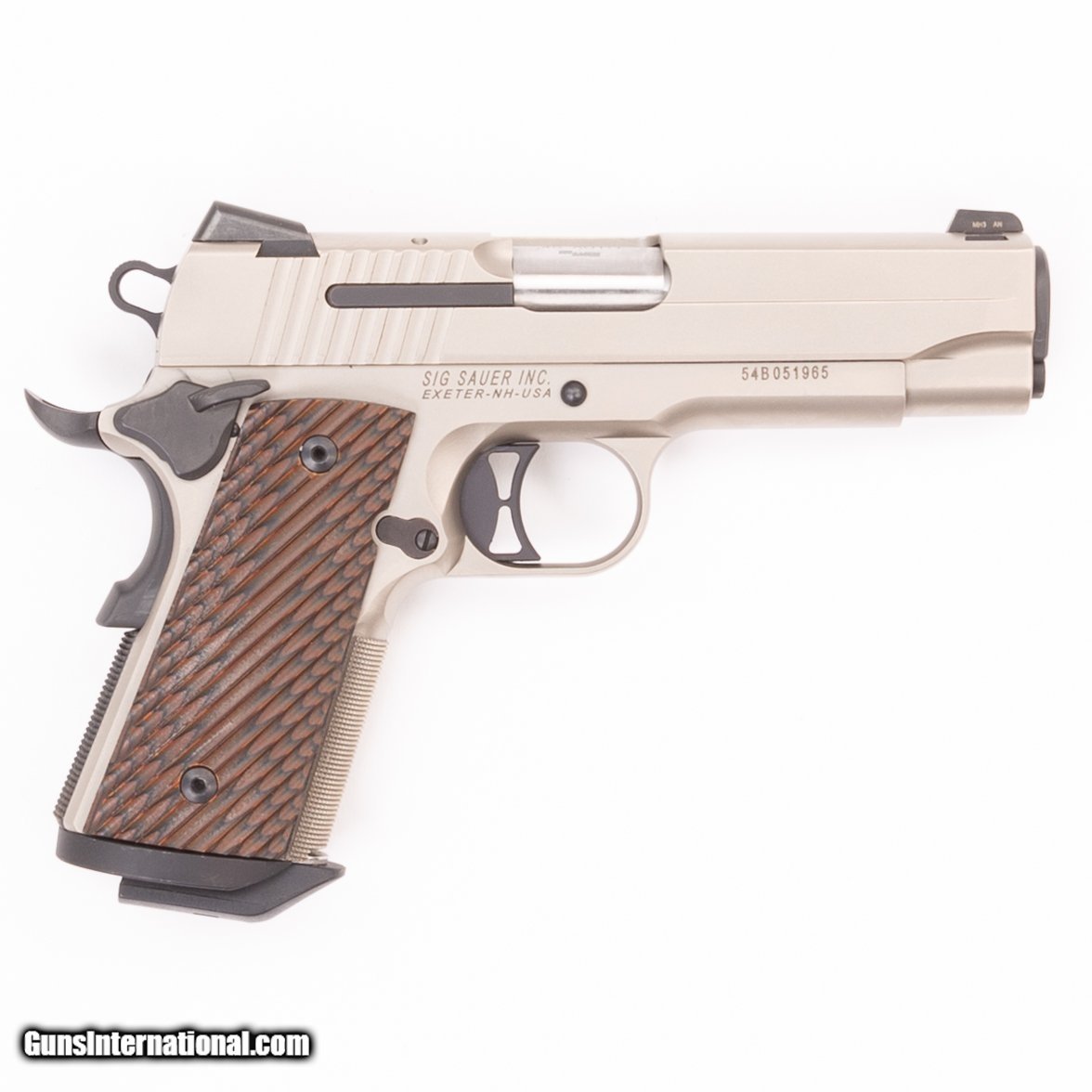 Description: Guns Listing ID: 1375606 This Sig Sauer features three 8-round magazines, the original case, owner‚‚s manual, a thumb safety, grip safety and night sights. Get the best bang for your buck when you get a Certified Used Firearm . When you see the Certified Used stamp on any of our firearms, you can be confident that you’re getting exactly what you want – a gun only in very good to excellent condition and held to the highest quality standard. All Certified Used Guns come with a ‘no questions asked’ return policy . PLUS, ALL CERTIFIED USED GUNS SHIP FREE! SOLD Manufacturer: SIG SAUER Model: 1911 Caliber Info: .45 ACP Condition: Used - Non-Certified Barrels: 4.5 BARREL Finish: TWO-TONE |