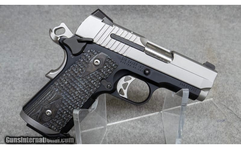Description: For your consideration, this compact Sig Sauer 1911 is in overall excellent condition, showing little wear from use. Mechanically flawless. Ships as firearm and one magazine only. .45 ACP SOLD Chambers: .45 ACP Metal Condition: Excellent Bore Condition: Excellent Barrels: 4" Barrel Triggers: Single Action Only Butt Pad: Sig G10 Grips Sights: Novak-Style 3-Dot Night Sights Item Location: Greenville, SC |