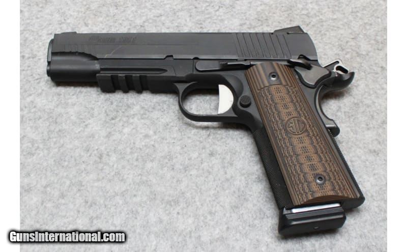 Description: Sig Sauer 1911 semiautomatic pistol chambered in .45 Auto. Comes with factory hard case and 1 magazine .45 Auto SOLD Metal Condition: Very Good with Minor Handling Marks Wood Condition: Very Good with Minor Handling Marks Bore Condition: Bright And Clear Barrels: 5 Inch Triggers: Factory Flat Trigger Butt Pad: Sig G-10 Weight: 1 lbs 12 oz Sights: White 3-Dot Item Location: Allen, TX |